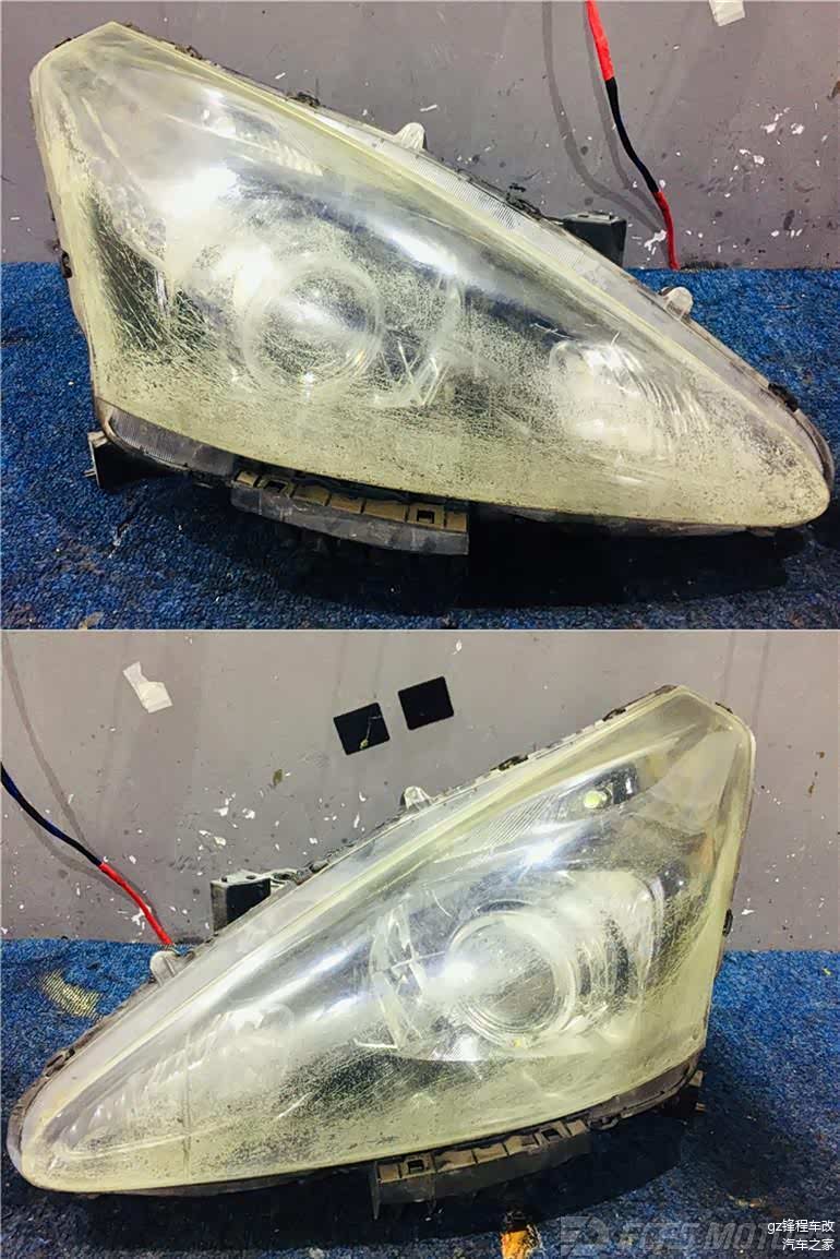 看看原车灯罩来灯效果:就好像是“白内障”一样,跟本看不清。这样的效果你敢晚上开车出去吗?