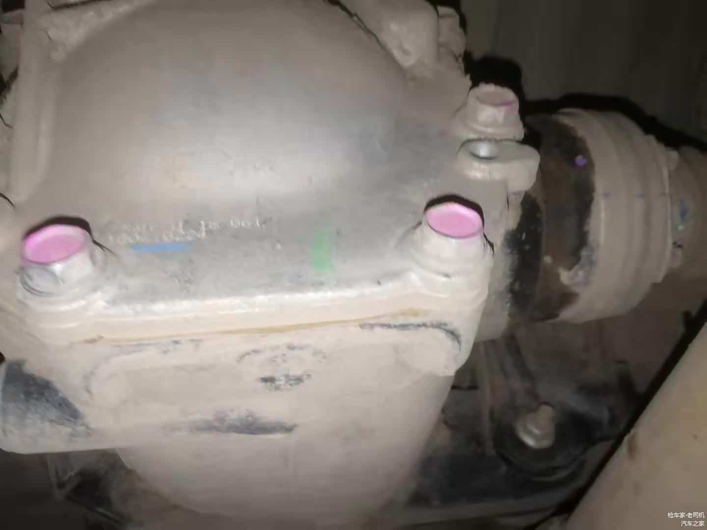 看到后部的时候发现了一些异常,两后半轴内球笼胶套都有一些渗出来的油渍,这应该是后球笼套密封不到位造成的。可以尝试紧固内球笼卡箍或者更换球笼套。