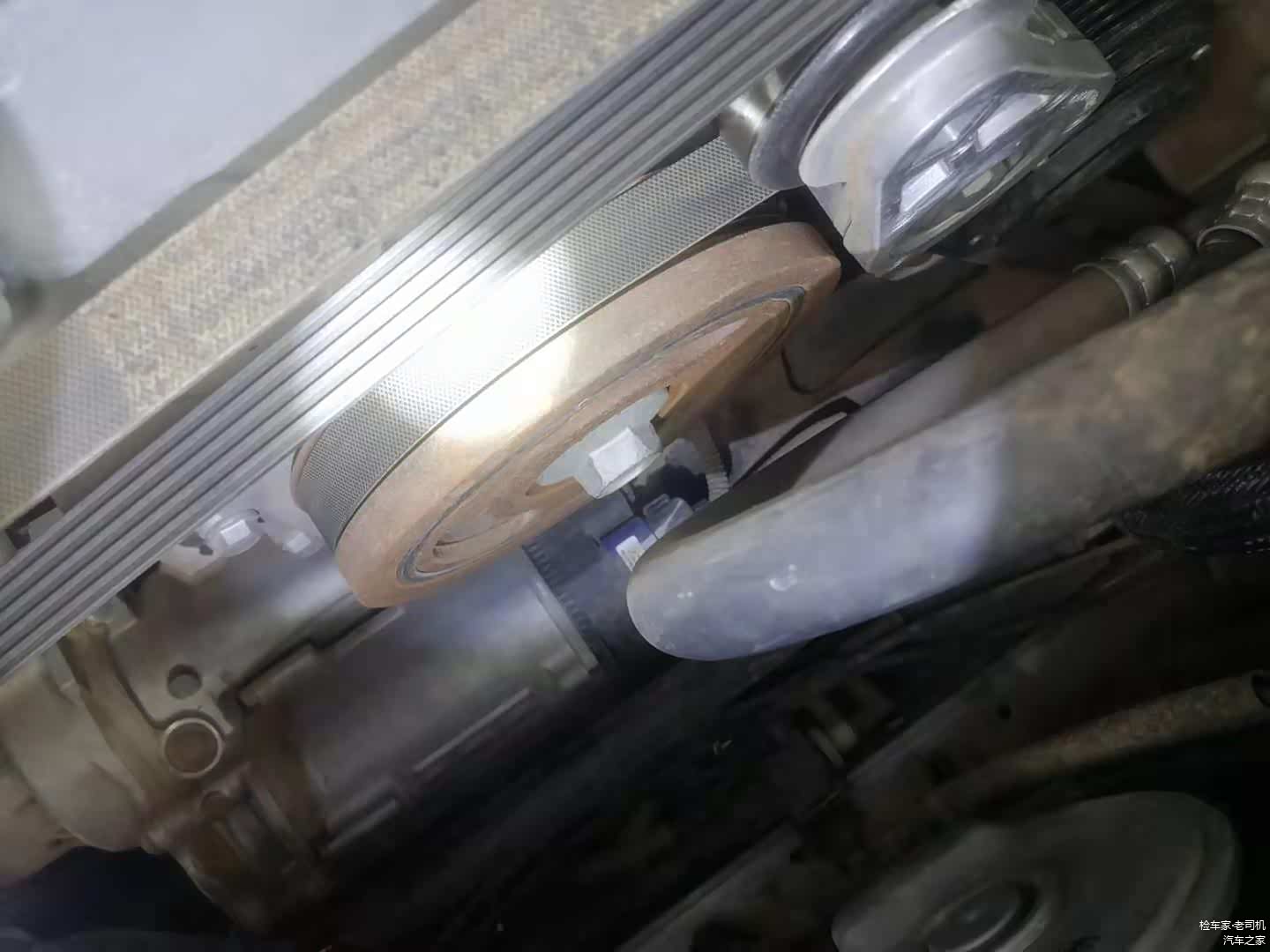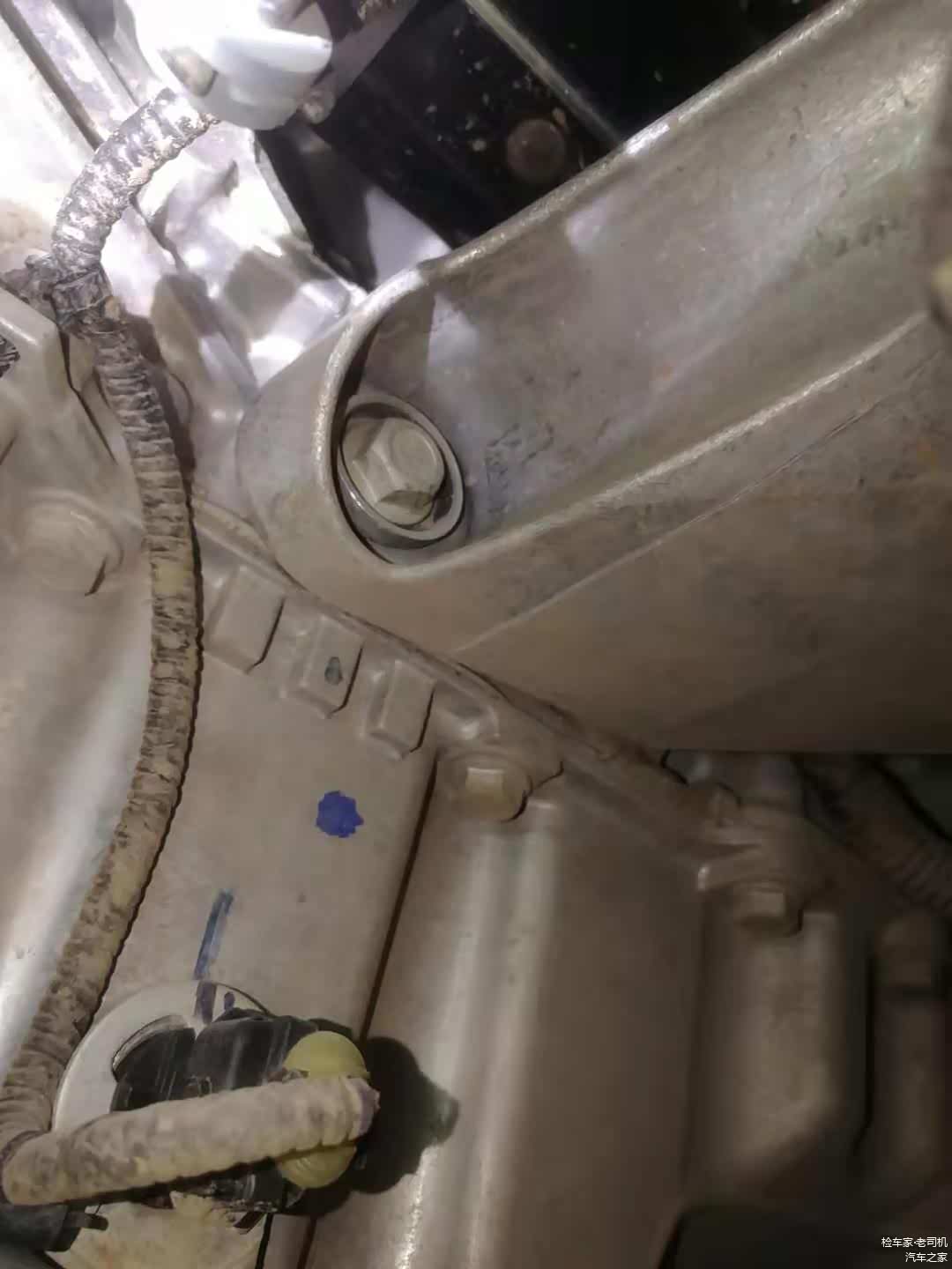 发动机下部支架也是一切正常,油底壳也非常干净,没有渗油漏油的情况。