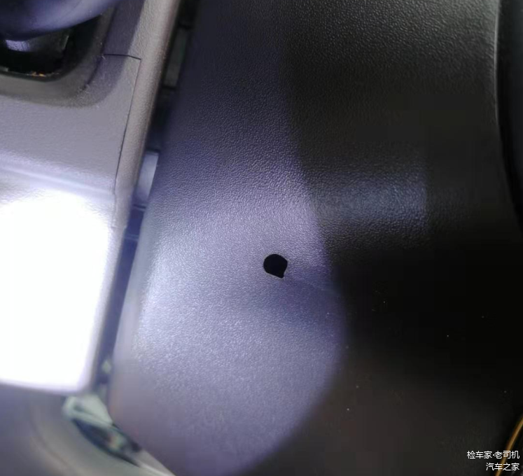 借此机会给大家讲解一下车辆气囊的情况。一般气囊拆卸时,需要用稍微纤细的小螺丝刀,在方向盘旁边的小孔捅进去,撬动里面的细铁丝,可以看到这台车的气囊孔没有被撬动的痕迹,气囊与方向盘没有色差,两侧间隙均匀,判断为原车气囊。
