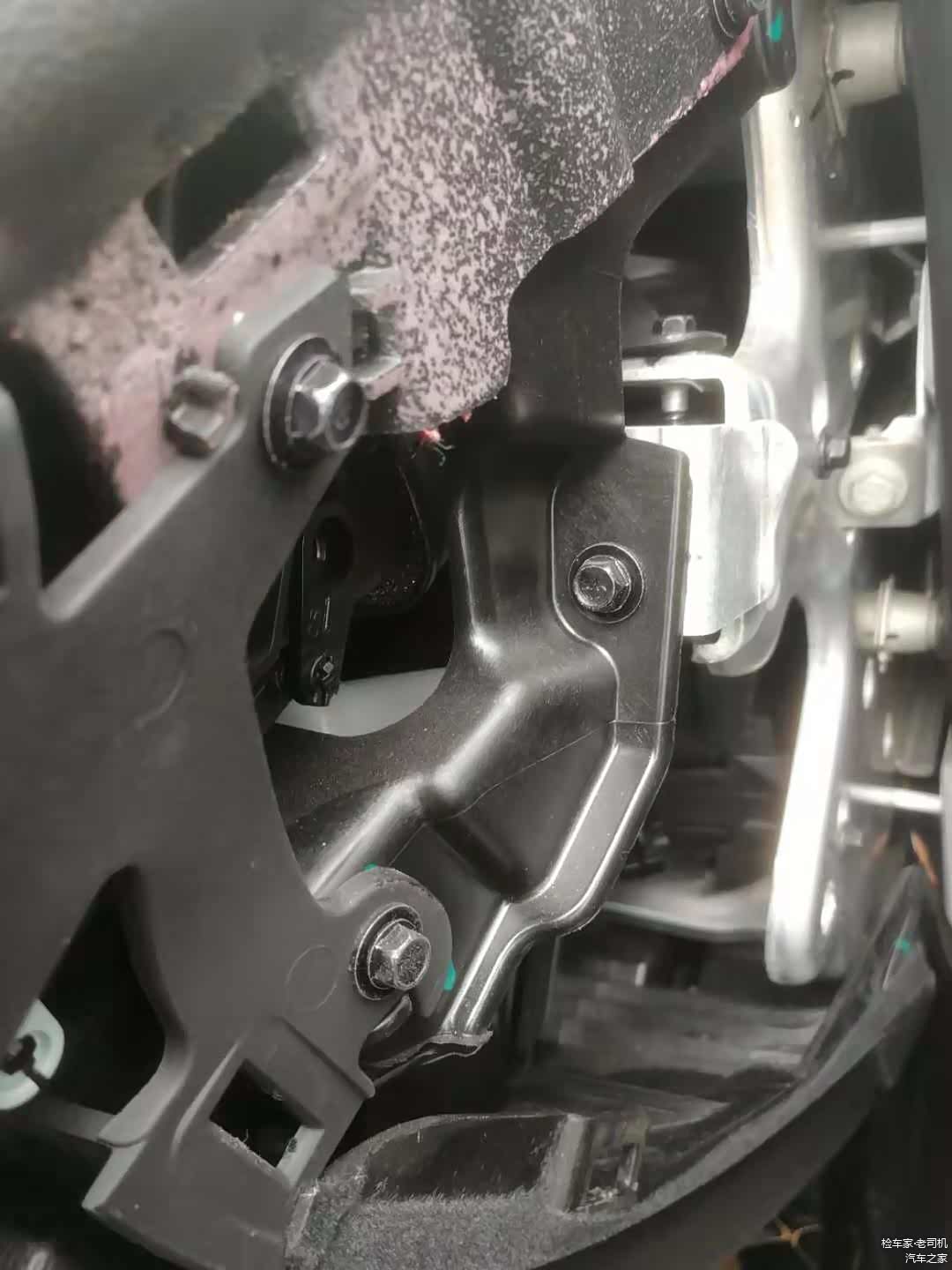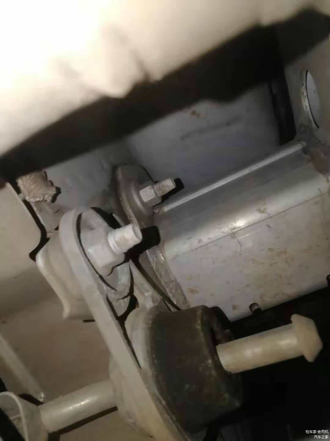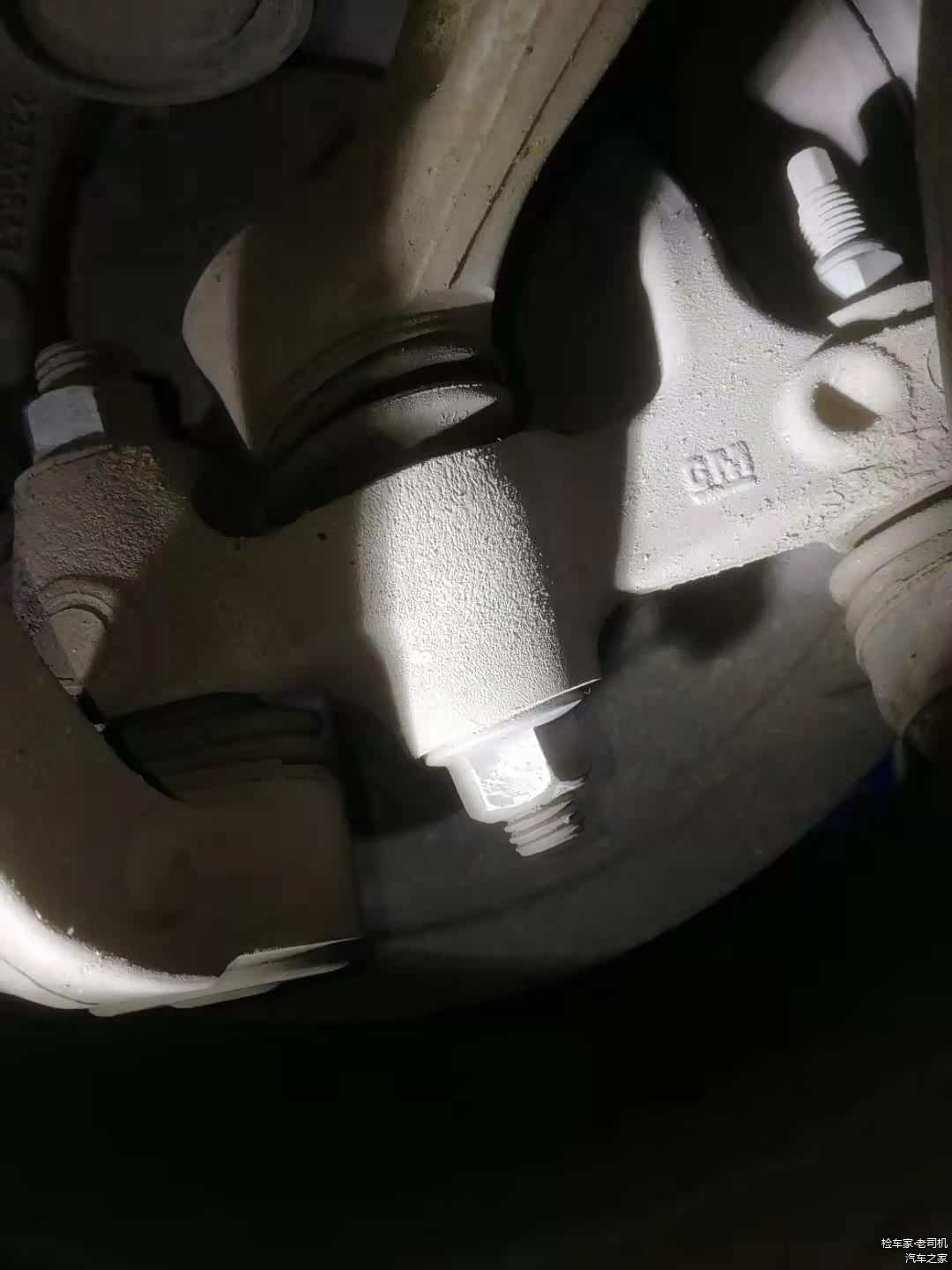 前部悬挂所有固定螺丝没有拆卸拧动的痕迹,本身车子的使用时间不长,这种情况也是在意料之中的。只要没有严重托底或者撞击是动不了底盘的。
