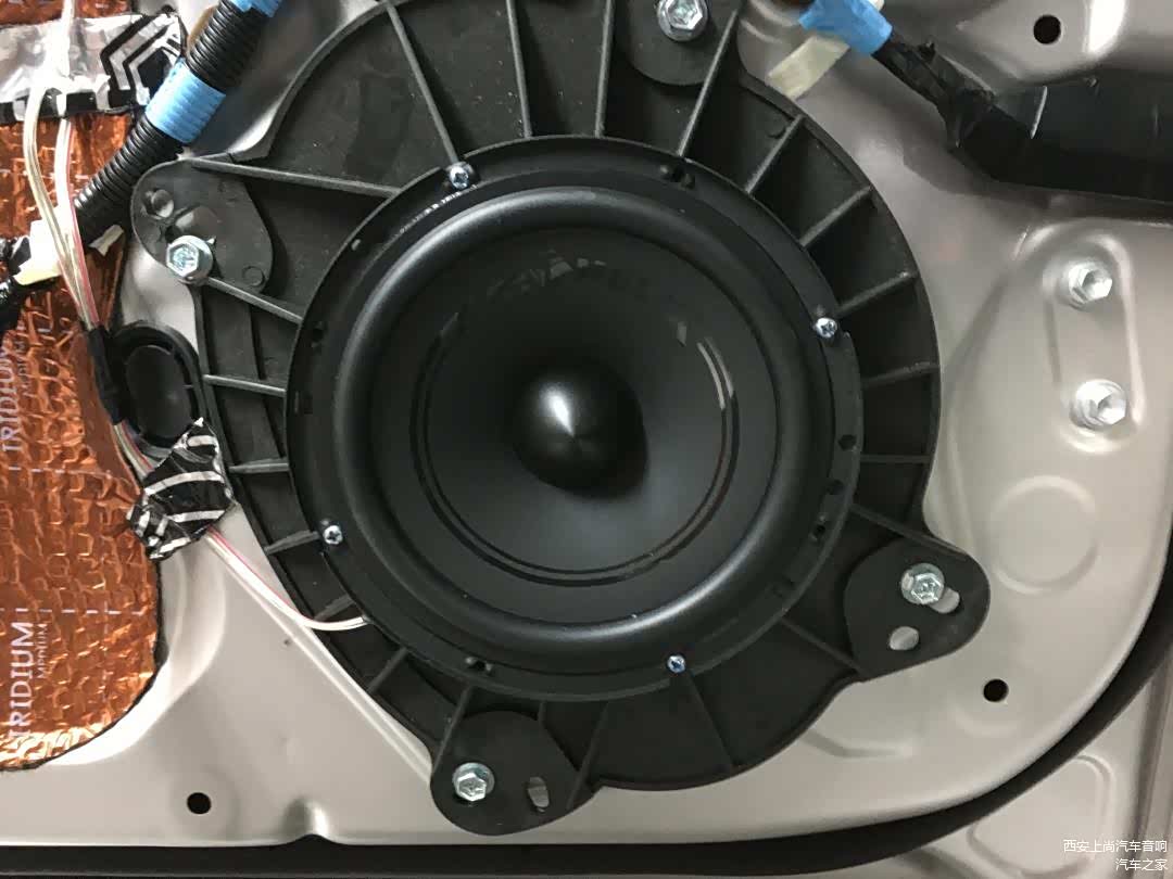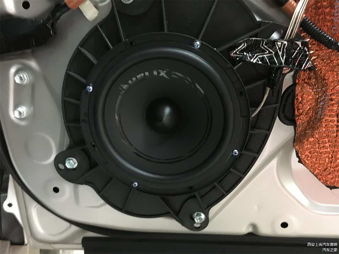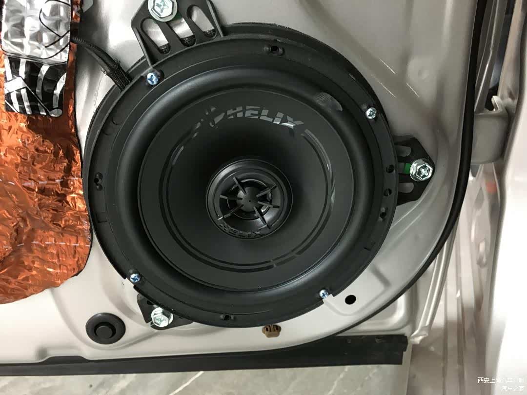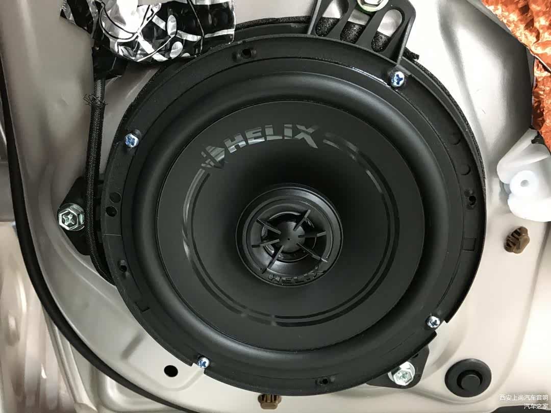 德国喜力士F62C两分频喇叭音盆黑色亚光锥面设计,带有自身特有的HELIX标志,HELIX盆架以精钢片冲压成型坚固耐用,带有很多的散热通风孔可以更好地进行音圈冷却和高功率处理。在我们专业的技师改装下将德国喜力士F62C中低音喇叭毫无损坏的安装在原喇叭位,丝毫看不出有改动的痕迹。