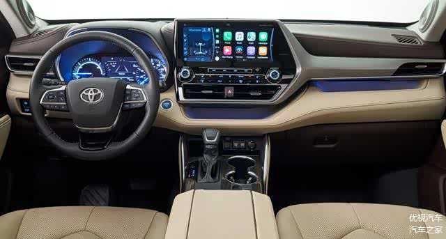 内饰方面全新汉兰达有了长足的进步,摆脱了现款"居家"风格的内饰造型,而是采用TNGA架构车型的通用设计思路。看上去豪华感更强而且非常显档次。内饰采用了大量的软质材料以及类皮材质。中控屏和空调控制以及多媒体按钮集成在一起,位于箭羽装饰的尾端。遗憾的是新款汉兰达没有采用液晶仪表盘以及电子档杆,科技感不足。配置方面也提升不少,全速域自适应巡航、碰撞预警、车道保持、等等配置一应俱全。座椅布局方面预计提供5、6、7三种座椅布局,主推车型是七座版。