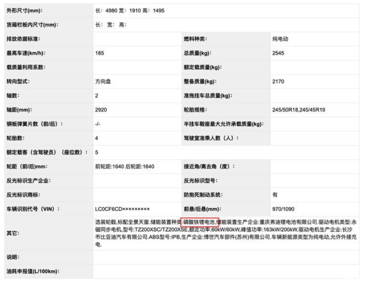 动力方面,配备的是一台最大功率为160KW(218PS)的驱动电机,电池组为比亚迪提供的三元锂材料电池。同时,官方表示该车NEDC续航里程605km。