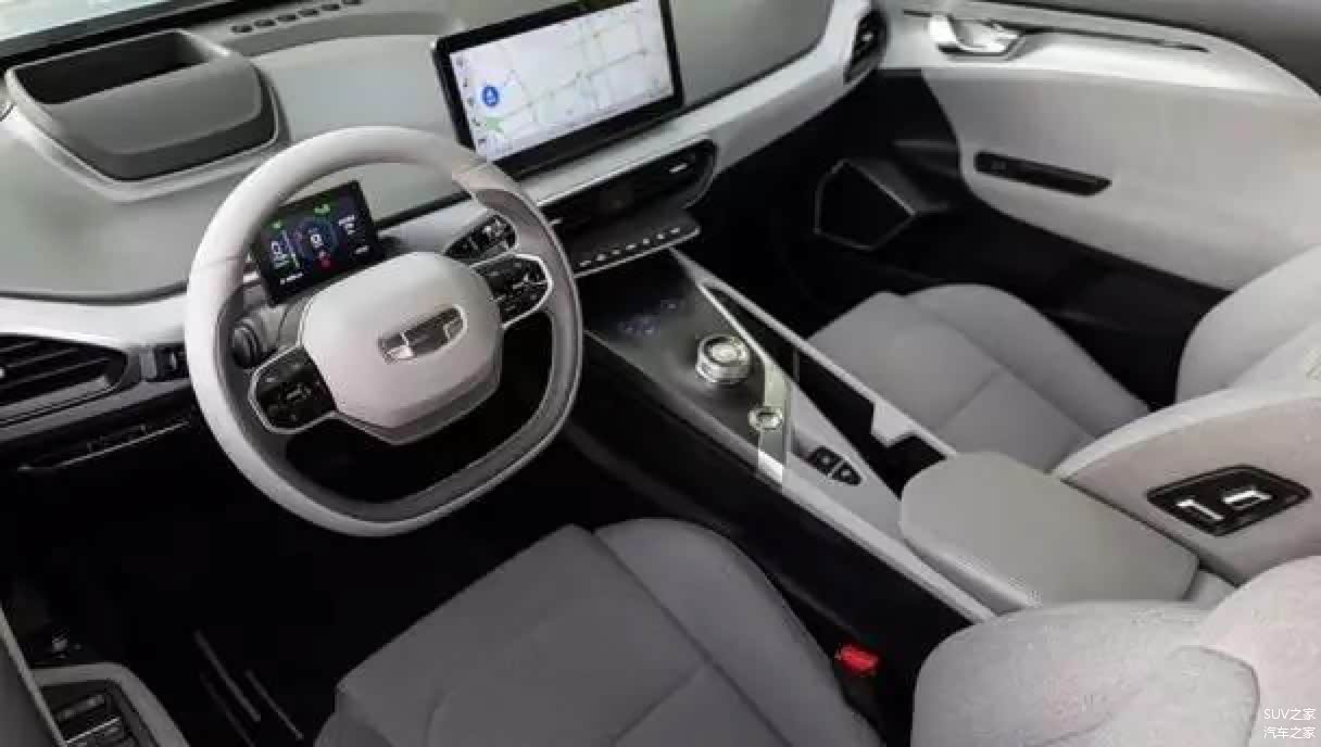 内饰方面,几何C延续了几何A的设计布局。新车采用双幅式方向盘设计,方向盘两侧集成了多媒体控制、自适应巡航等功能。此外,新车采用悬浮式中控屏、旋钮式换挡机构以及小尺寸液晶仪表盘,设计简洁、科技感相对凸显。值得一提的是,新车的座椅也采用了和几何A一样的环保织物座椅,采用了欧盟认证的skin-care婴儿环保织物,具备防水、防污、透气等作用。