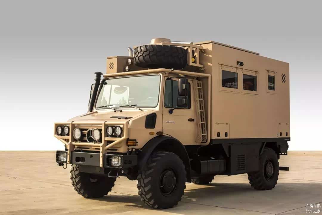 诺马迪森“撼路者”是基于奔驰乌尼莫克U4000底盘打造,从外型上就显示出了整个房车的与众不同,刚猛、霸气的外观搭配上土黄色的配色,给人一种浓浓的重机械风,看上去和部队使用的装甲车十分相似,足够威武霸气。