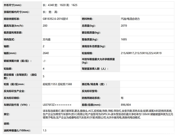 动力方面,新车搭载由1.5T三缸发动机+电动机组成的动力系统,其中发动机最大功率130kW(177PS),峰值扭矩265N·m,动力电池为三元锂离子电池。第一电动将持续关注,让您得到最新鲜的车型资讯。