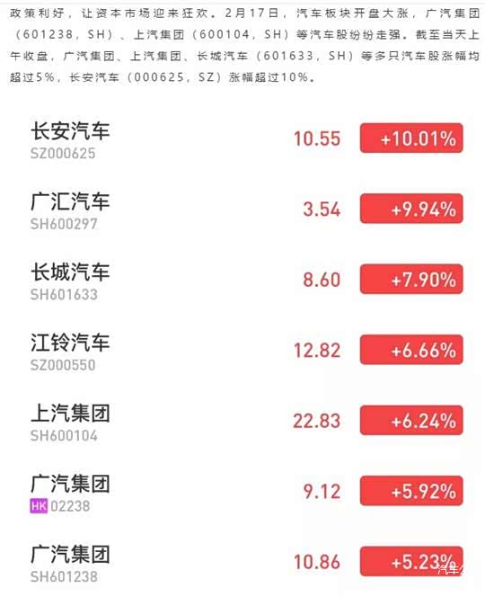资本市场的嗅觉非常灵敏,汽车板块在2月17日开盘大涨。
