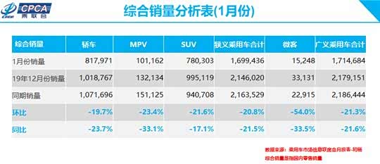 乘联会给的1月车市销量数据很直观,零售同比下降21.5%至169.9万辆,却已经是三个指标里最高者;批发同比下降21.4%至159.0万辆,降幅最小;跌势最狠的是产量,140.0万辆同比暴跌29.0%。