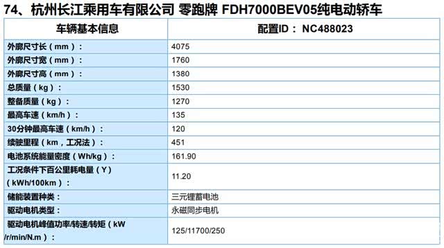 虽然目前零跑官方没有透露关于新款 S01 的参数信息,但从今年第 1 批《新能源汽车推广应用推荐车型目录》来看,新车对动力电池进行了升级,能量密度达到了 161.90 Wh/kg,NEDC 工况电耗仅为 11.2 kWh/100km,工况续航升级至 451 km。