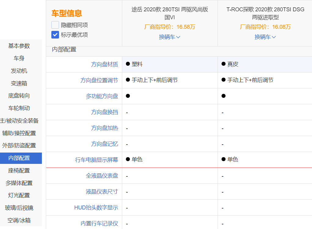 在详细对比了一汽-大众探歌以及上汽大众途岳在各方面的实际表现之后不难发现,两者虽然定位相近,甚至都采用了同样的动力总成。但无论是车型研发初衷抑或是车型出身的不同,都让本质上不同源的二者表现出了很大的差异性。再结合国内市场两款车型在配置与售价上的差异更是可以看出,相同动力总成以及配置的途岳有着更高的指导价格,同样的价格消费者甚至可以购买到探歌的四驱车型。对于途岳来说,跨度过大的售价以及车型配置差异却也让其有着搭载1.4T发动机的全系车型没有四驱这一配置的尴尬。那么结论很显然,在这场同芯不同源的对比之中,一汽-大众探歌对于年轻消费者而言是有着更高性价比同时更具吸引力的紧凑级SUV之选。