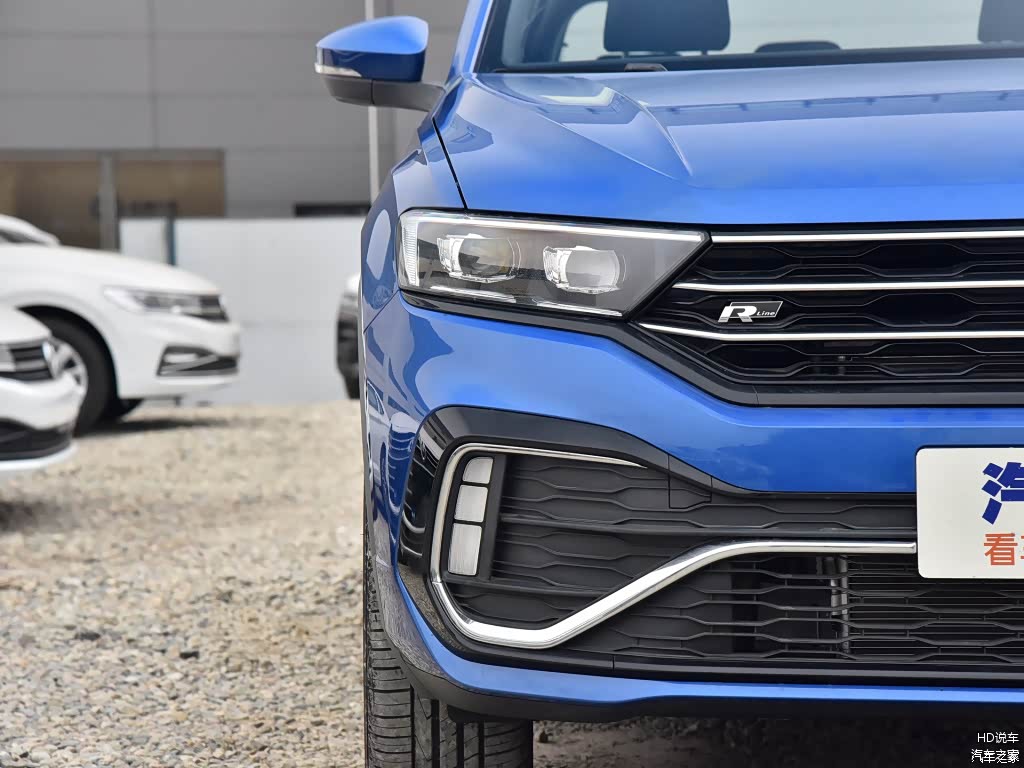 首先登场的便是以时尚、运动作为主色调的一汽-大众探歌。对全球汽车市场或是大众这个品牌有一定认知的消费者对于探歌的外观设计肯定不会陌生。正如大众在主战场欧洲市场率先开启的新一代设计语言一般,全新T-Roc作为主打年轻、时尚用车体验的车型将这样的理念出色地贯彻至每一个细节之处,这也恰巧造就了一汽-大众探歌最独特的一点。外观层面,探歌采用了原汁原味的欧洲设计,与海外版本的T-Roc别无二致。前进气格栅采用的横幅式镀铬装饰设计同时提升了车型的年轻气息与辨识度,同时,前格栅与左右两侧大灯灯组相连接的设计以及宽大吸睛的仿进气口装饰无疑满足了很多年轻消费群体所追求的运动感。