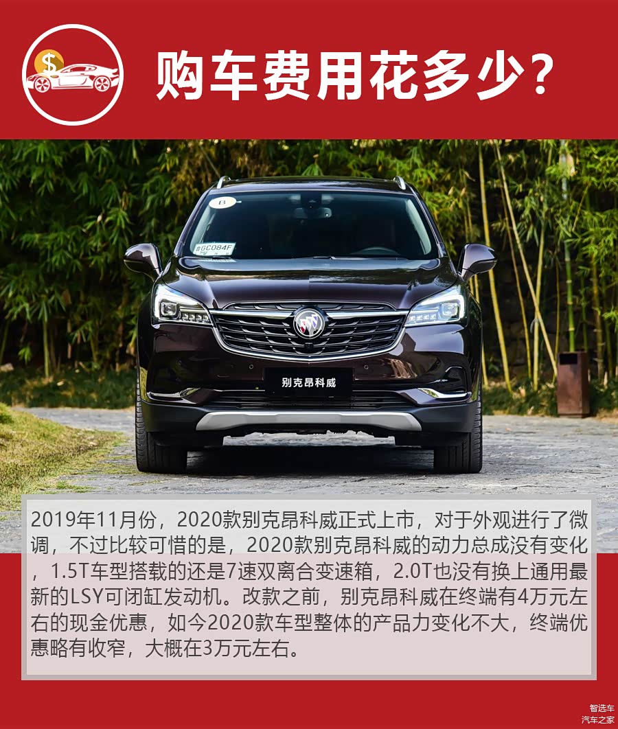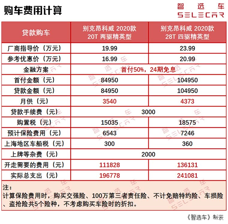 那么对于别克昂科威来说,1.5T和2.0T车型的购车、养车费用究竟相差多少?本期《钱车之鉴》栏目,小智将以2020款别克昂科威的20T两驱精英型和28T四驱精英型为例,帮大家进行计算分析。