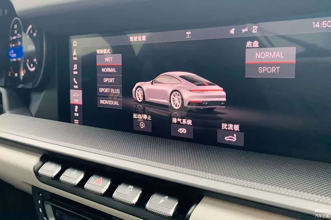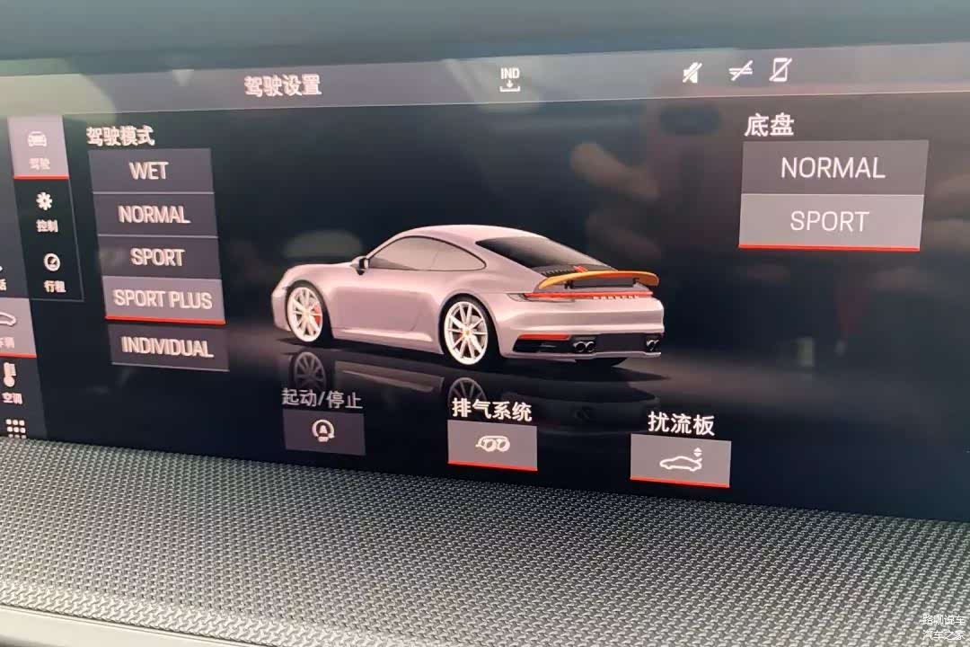 湿地模式是借助在前轮拱内的声音传感器,探测被车轮溅起的水花,从而判断路面的湿滑条件,例如雨停后的路面积水。在这个驾驶模式之下,911的轮拱罩内的“探头”(其实是传感器),会感知到当前路面的湿滑程度,来让PSM(保时捷稳定管理系统)、PTM(保时捷牵引力控制管理系统)随时介入,为驾驶者在雨天驾驶过程中保驾护航。如果是一个驾驶风格激进的驾驶者,那么在雨天这个模式的确很好用,它会让动力的输出更平缓,车身一系列的设定都以稳定性为首要目标。