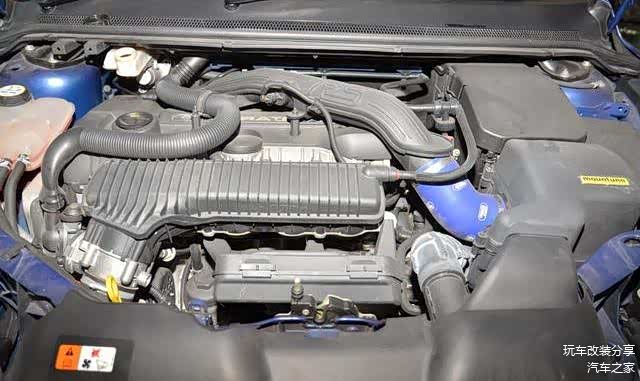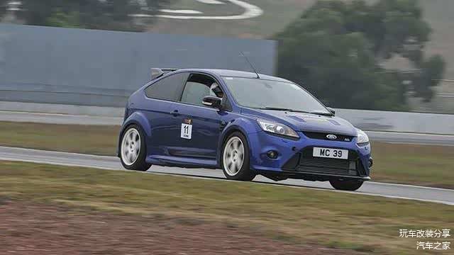 马力竞赛的驱使下,福克斯RS也都进入到300匹俱乐部,说实在当这305匹的马力是来自一副2522cc的直列五气缸Duratec RS引擎,就明白这样的一辆RS,其实已经跟拉力赛车没有任何关系了,它更应该按照大家所惯常理解的意思来解析:Racing Sport。借用自福特集团旗下沃尔沃的直列五气缸涡轮增压引擎,福特的工程师总有办法将这个皮实耐用的缸体压榨成杀人越货的推进器。腹内强化大法走起:使用硬度以及强度更高的硅-铝合金材料来制造活塞,锻造曲轴,汽缸筒也起用了石墨涂层,增强汽缸壁的耐高温以及耐磨性能。一系列的引擎本体强化之后,福特找来了有370匹输出潜力的Borg-Warner K16涡轮,在博世ME9.0引擎管理系统的控制下,厂方将最大增压值设定在1.4Bar,令这副只有8.5:1压缩比的引擎获得305匹/44.9Kgm的动力成绩。更可怕的是,这样强悍的动力完全依靠一对前轮来传递给路面,恐怖的轮上扭矩足够让前轮在全油门起步时发生严重的扭力转向,让RS就像醉酒翁蛇行,没办法走直线。