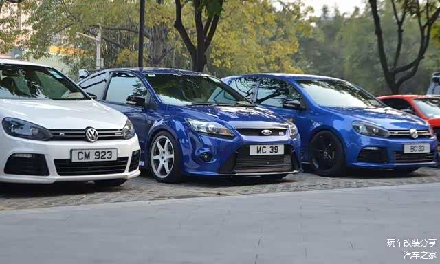 图:很有趣的一个场景,两辆高尔夫R夹击福克斯RS,不过事实上这两款车并非同一等级的对手,要迎战高尔夫R?福克斯ST也差不多了吧。