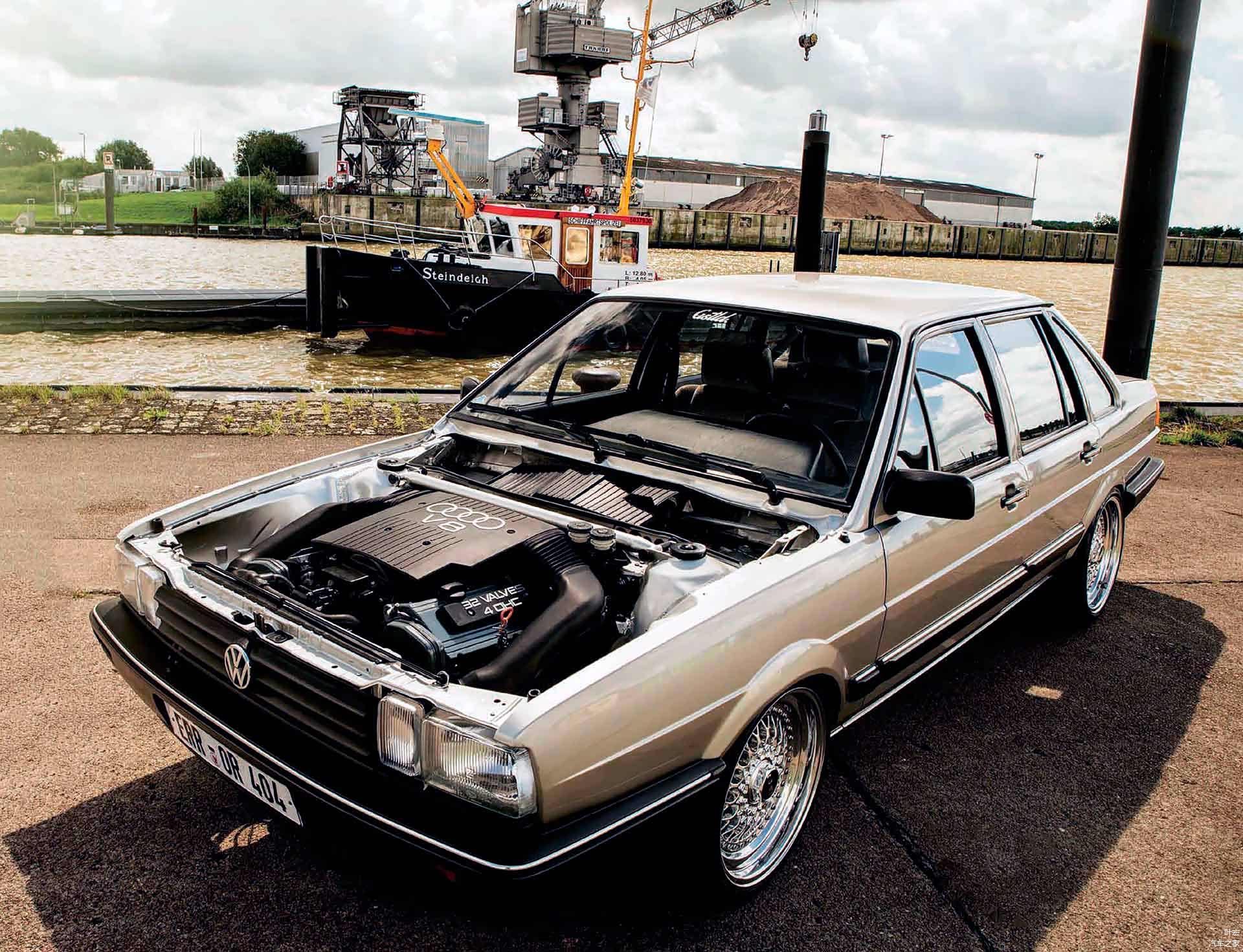 上图是一辆1985年的西德版大众帕萨特B2,也就是同时期的上海大众桑塔纳同款车型。1985年大众品牌最高级的车就是轿车版的帕萨特B2,这辆车原来动力为一台1.6升排量的4缸发动机(1985年的大众轿车最高级的发动机只有5个缸,大众品牌的第一款量产版6缸发动机于1990年首次问世)。但是,现在它被彻底改装了,怎么改装的看本篇文章的下半部分…… 因为这时一定有人会问了:这明明是一辆桑塔纳,它怎么成帕萨特B2了?
