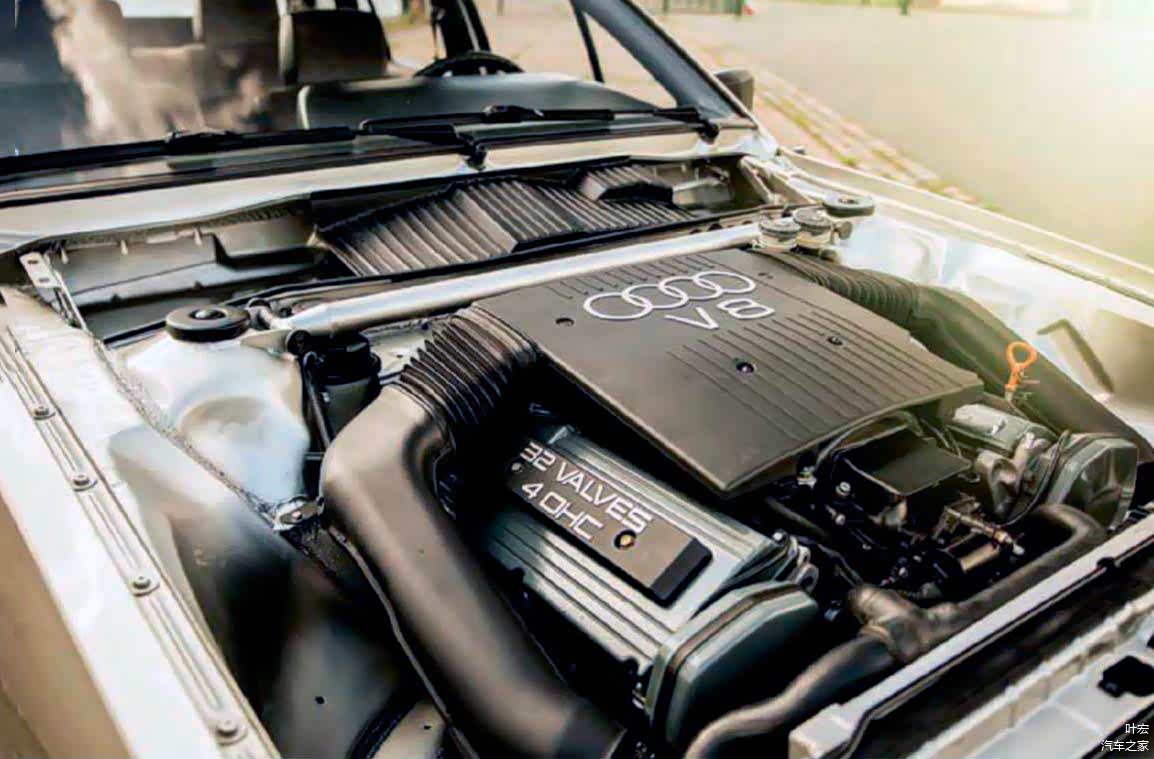 原来帕萨特B2扁平的发动机舱放下这台大号V8发动机有些吃力,主要是V8发动机的高度超过发动机舱盖的高度。索性引擎盖就不要了,发动机裸奔了。