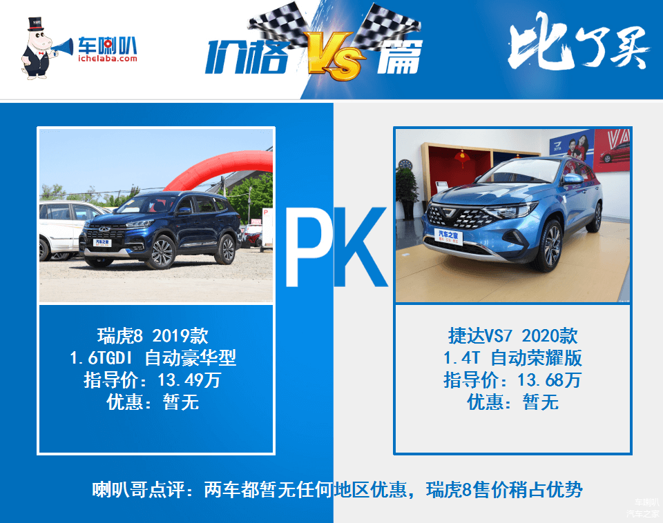 喇叭哥点评:如果你预算不高,又想要一台“德味”的SUV,那么VS7就是最具性价比的选择。如果你更在意成熟稳重的外观,又想要一台实惠量大的标准中型SUV的话,瑞虎8则是一款实力较强的车型。
