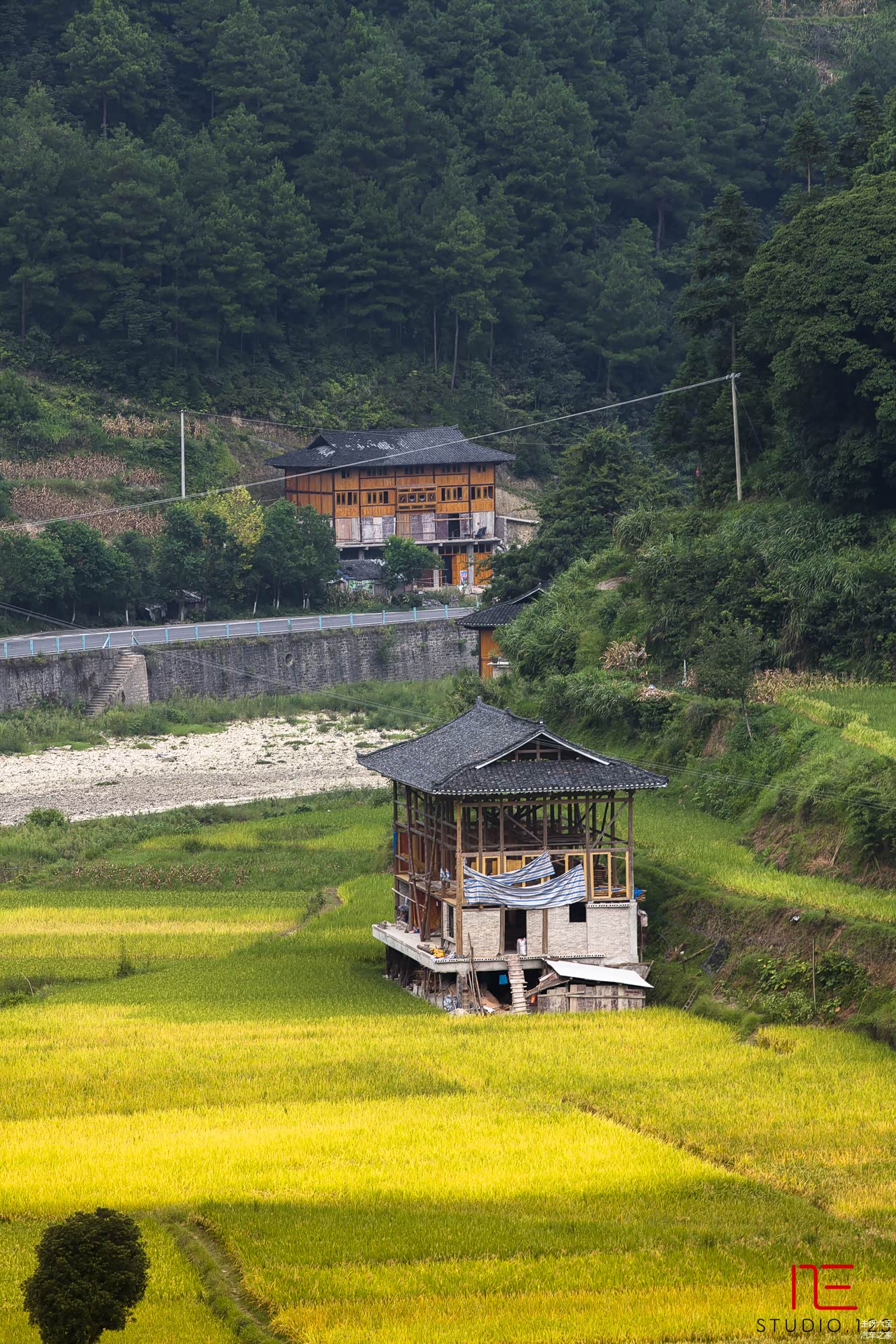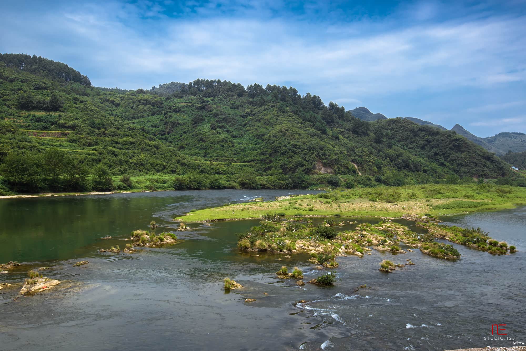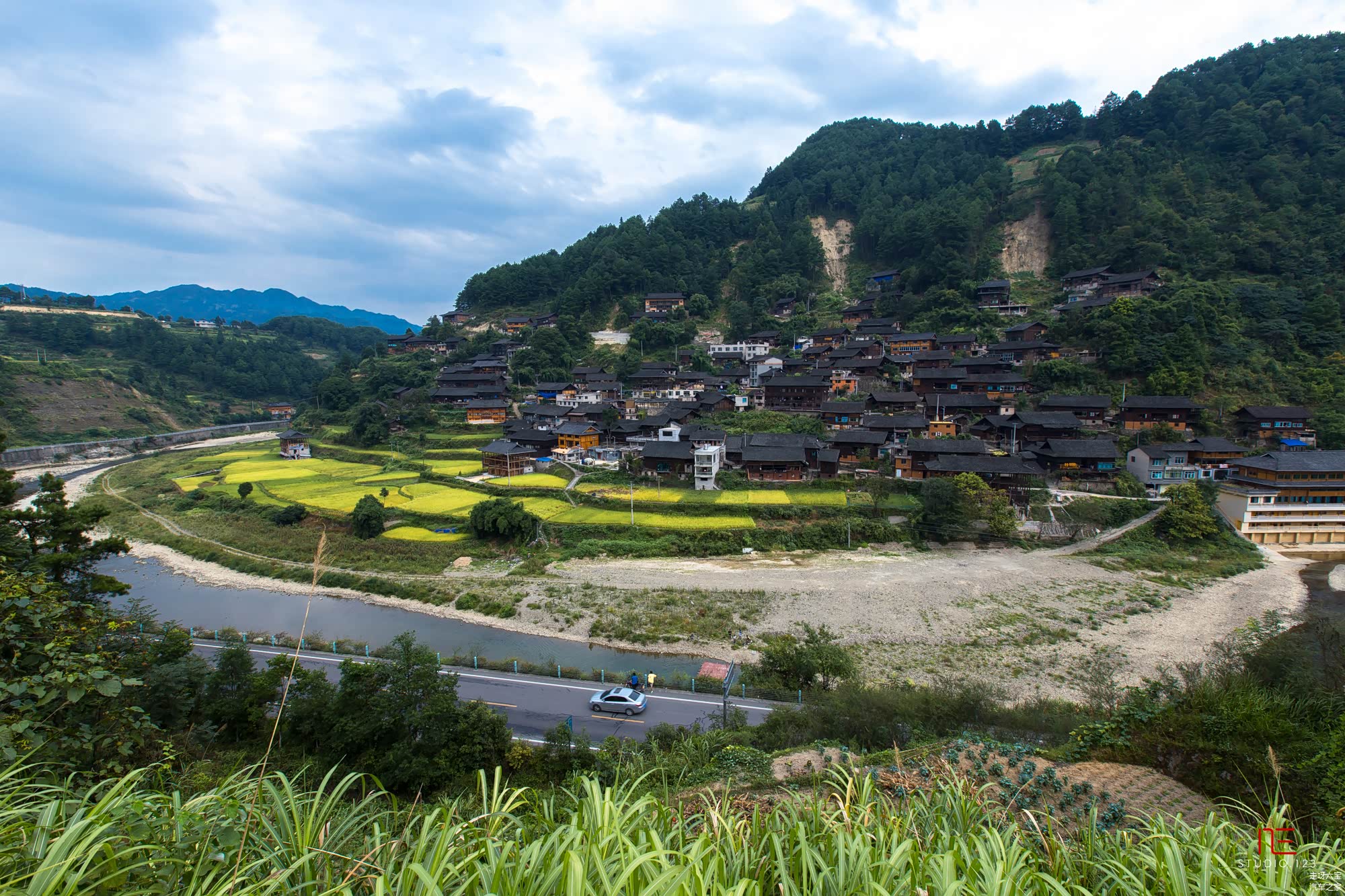我们只是去 郎德 上寨吃了碗面就继续赶路了,路上的原始村落并不亚于这里。我们的目的地是黄果树,去往高速路的国道旁,有一条大大的河流。