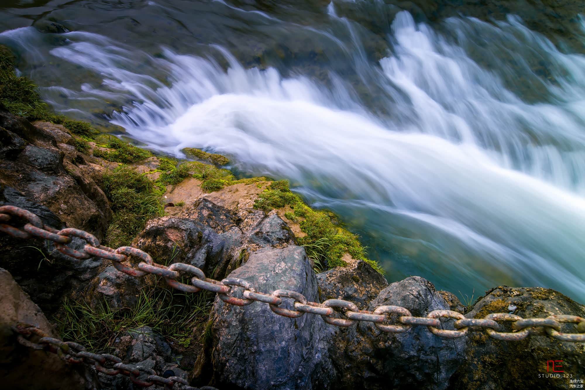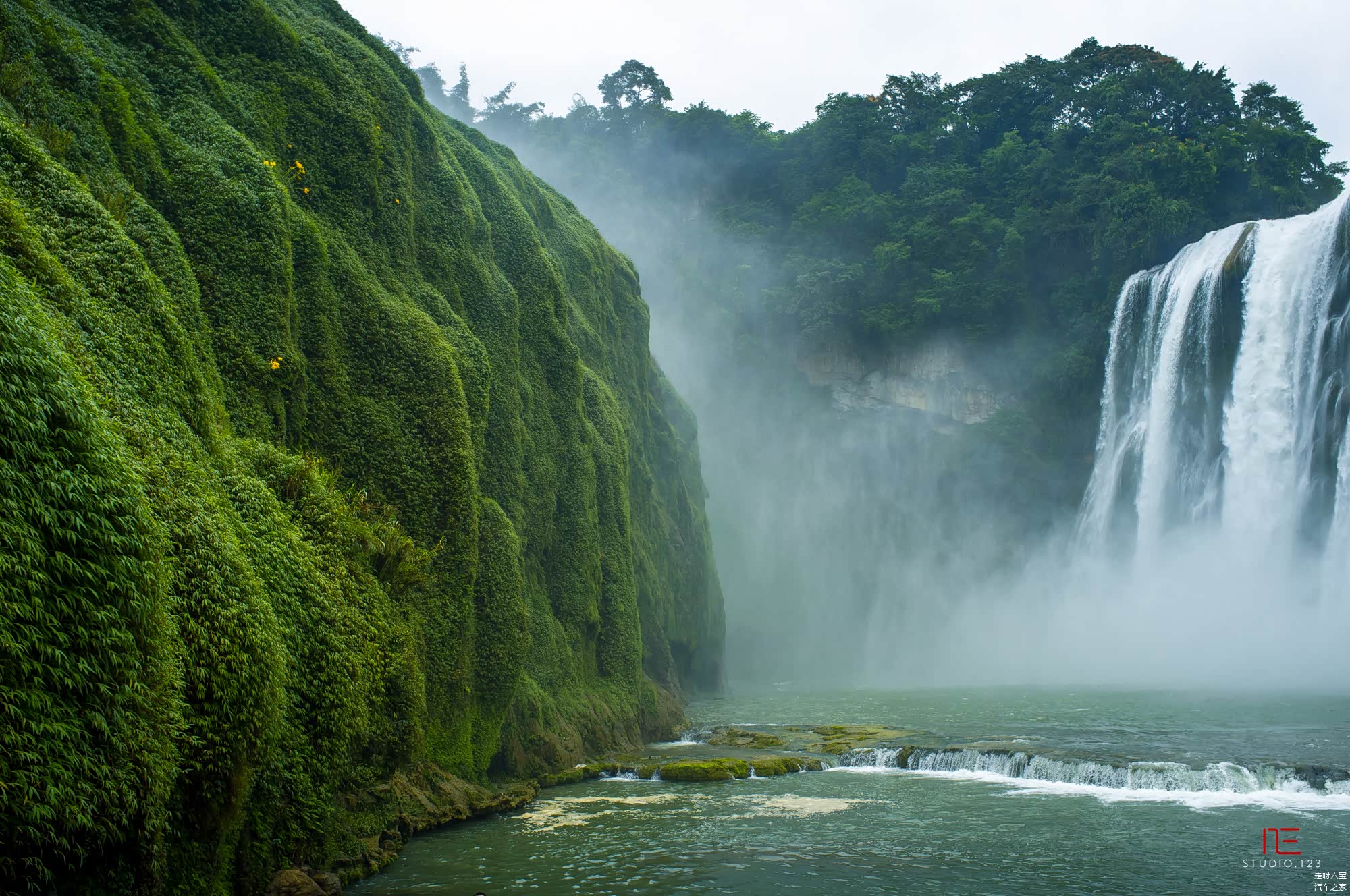 瀑布旁边的大大山壁上,长满了绿色的植物。满眼的葱绿冲击着视觉。