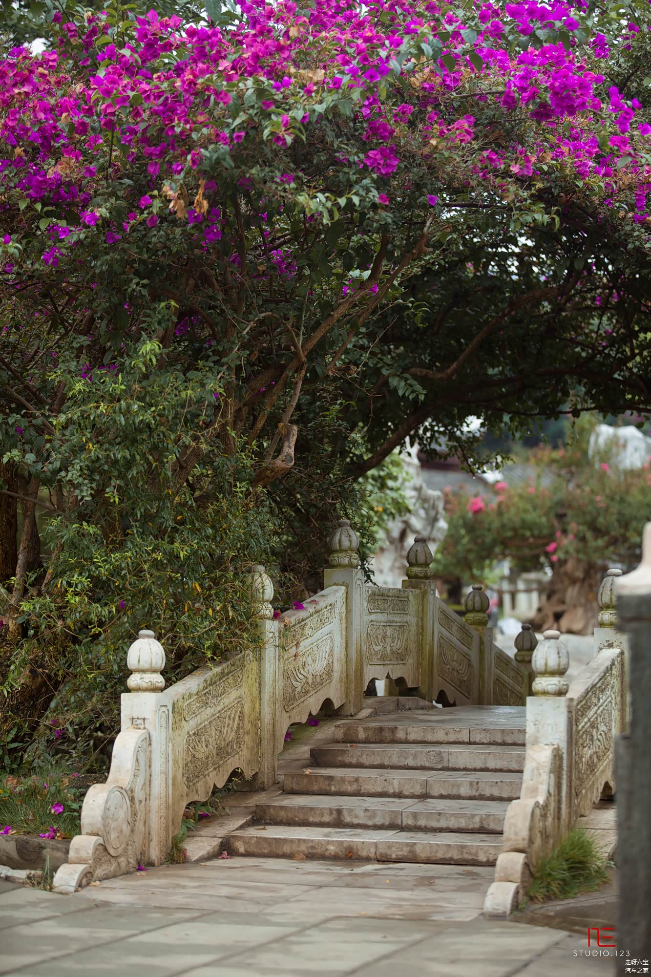 路上还有美美的三角梅藤 通道 。
