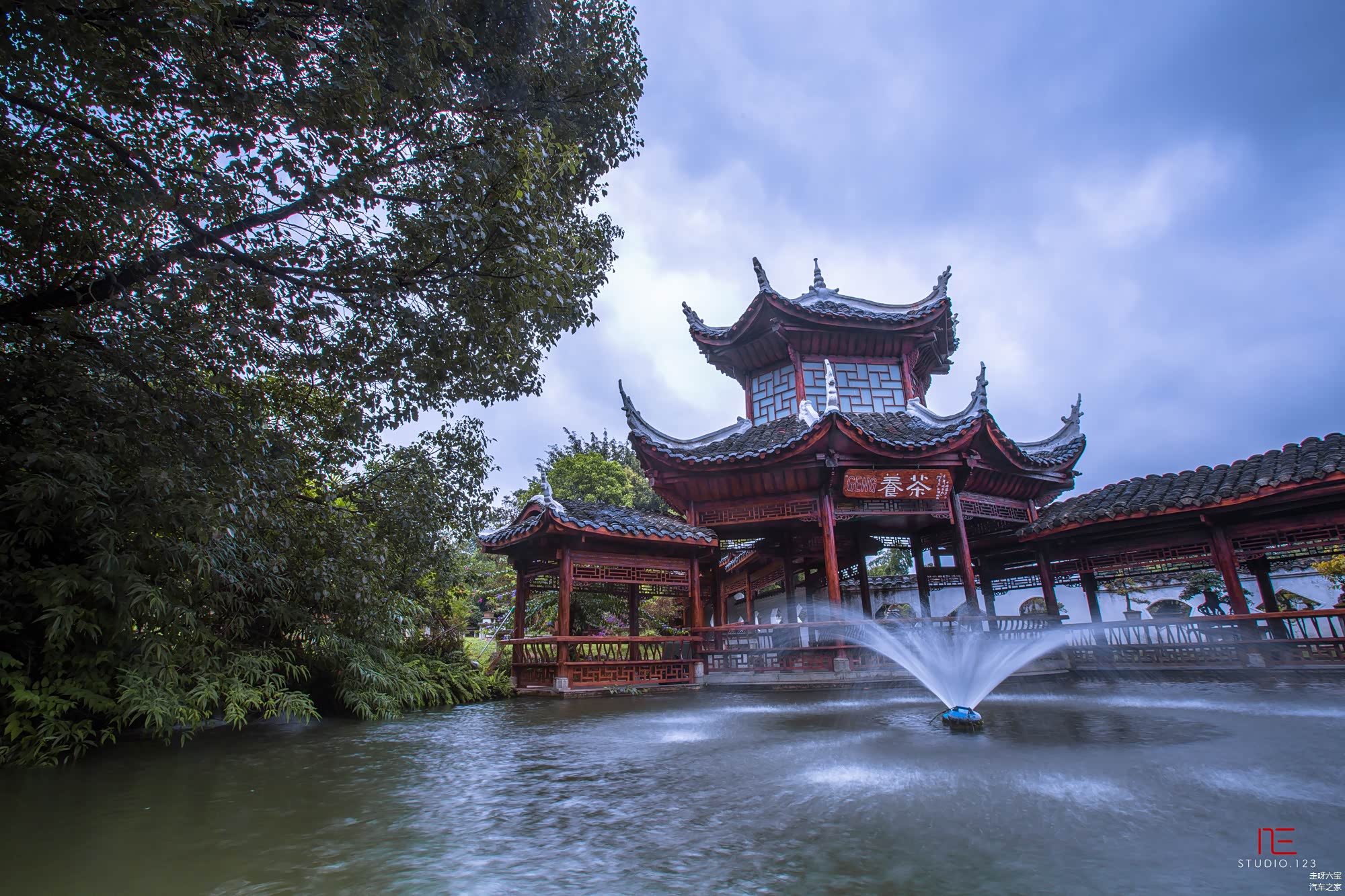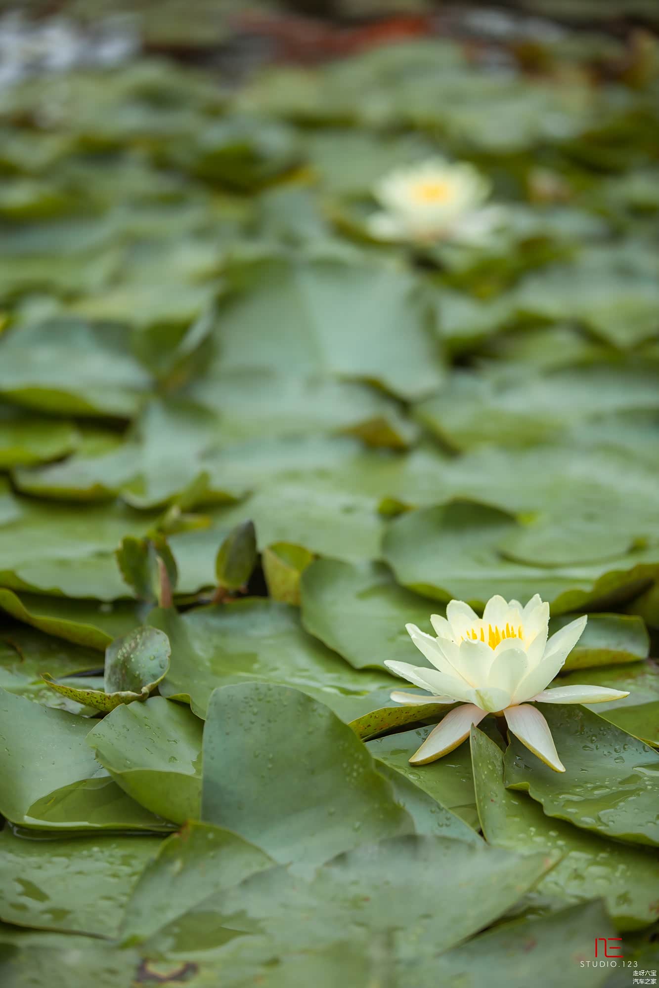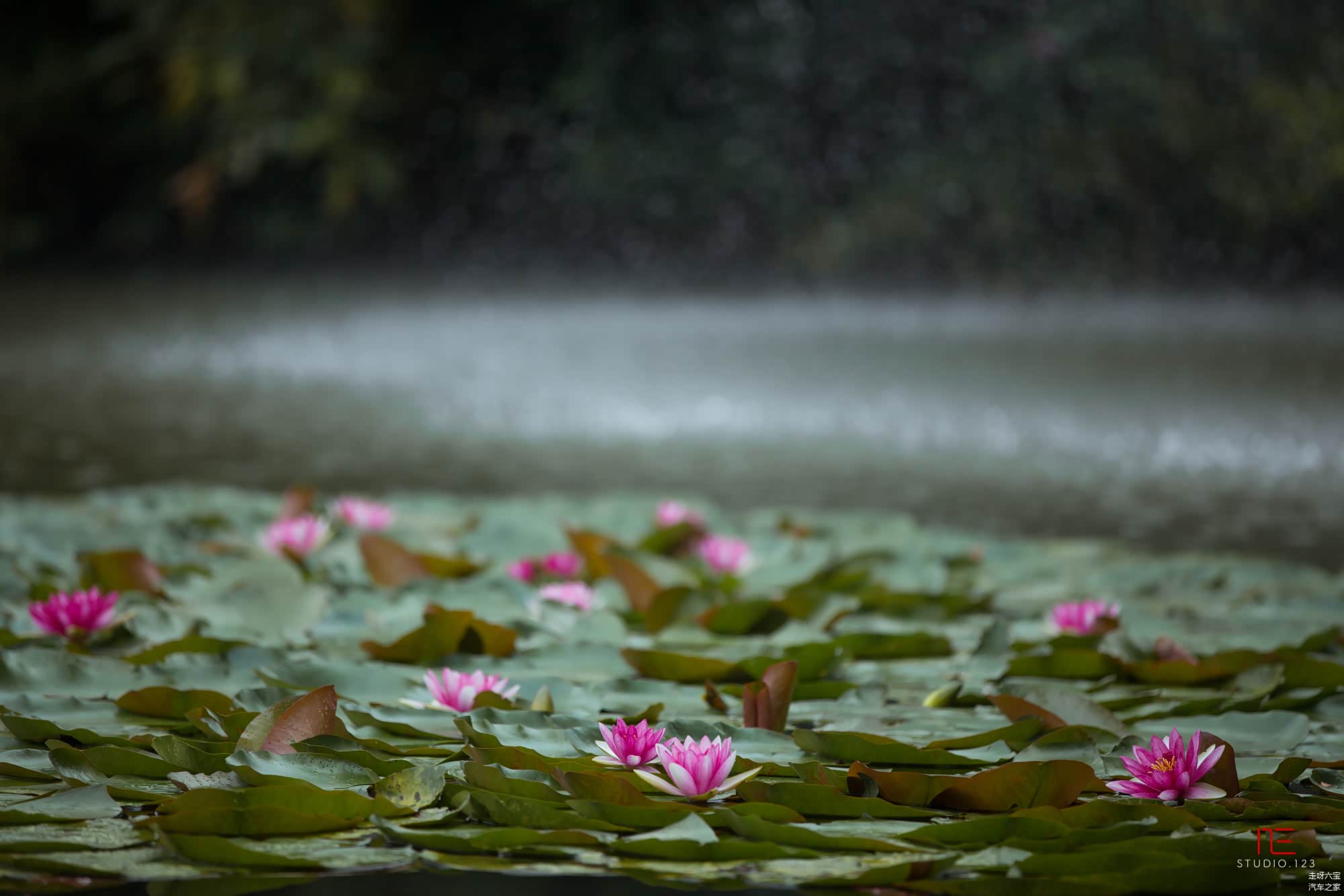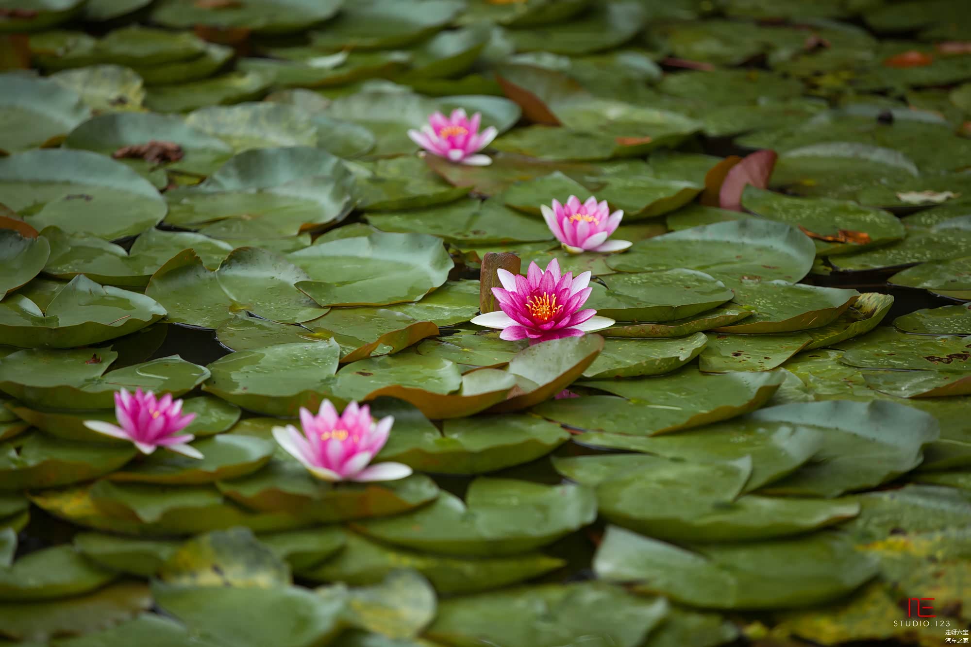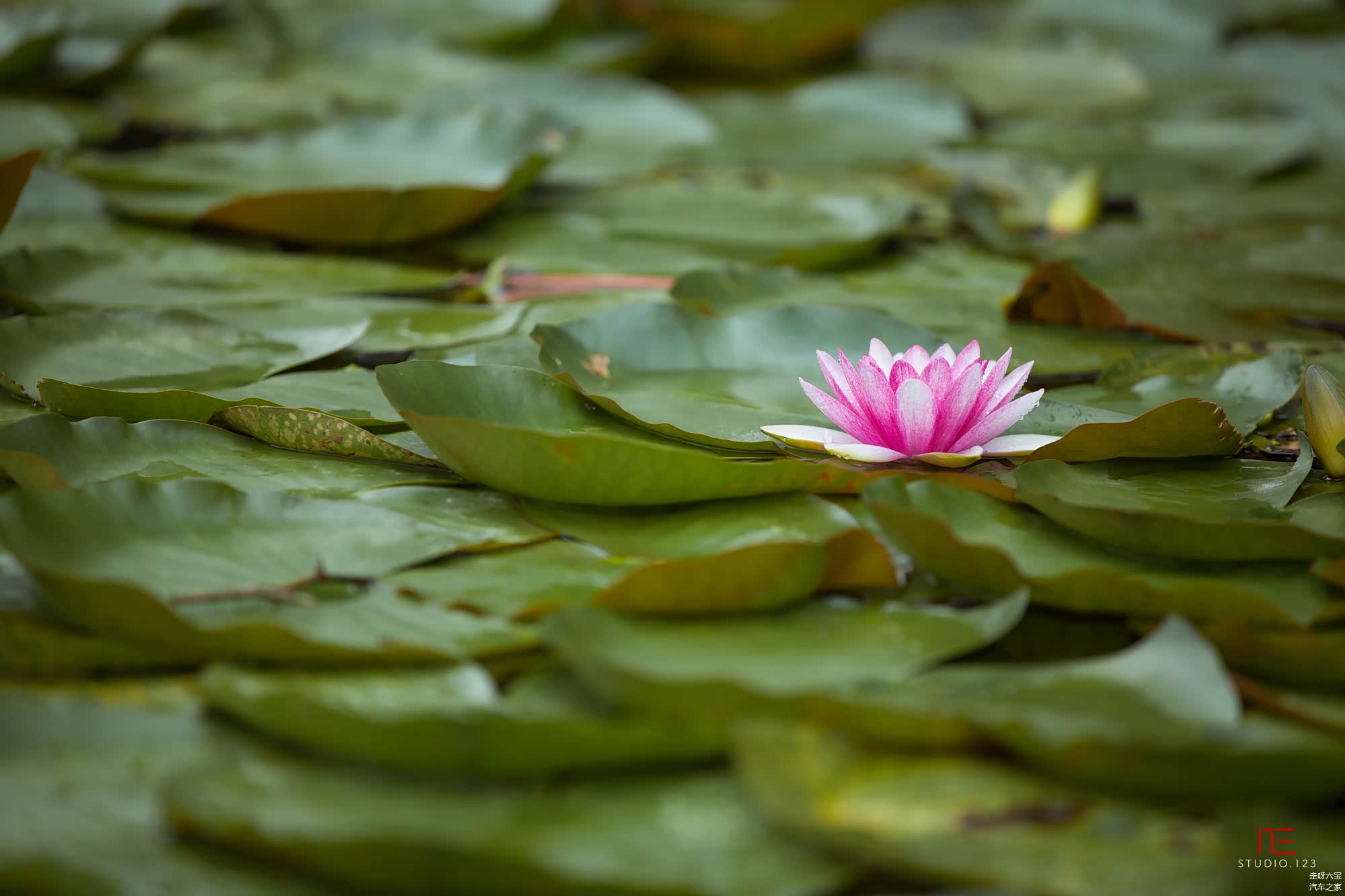 盆景园旁有个小小的院落,有小小的亭台楼阁,美美的睡莲安静的开放着.