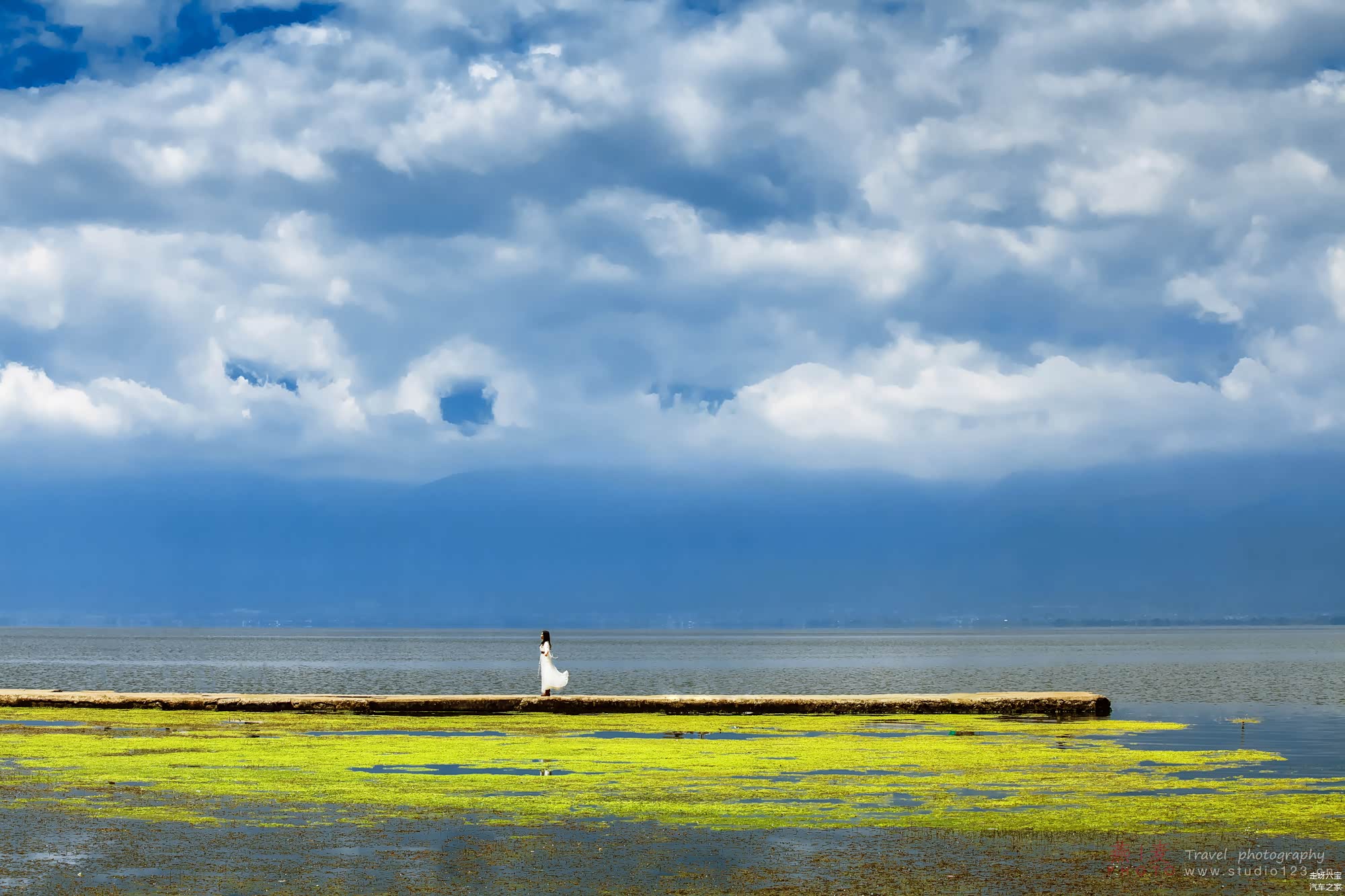 我的游客照。风景像不像过去家里贴的瓷片风景画?