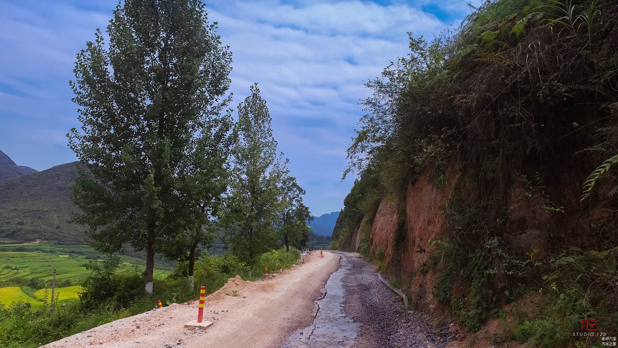 镇远 出来,以为山间会是美景,就选择了828县道向 郎德 出发。车钻进山窝窝里,开始心惊胆颤的压着一个个山间弯道。路上很多地方都有大量的渣土车经过,灰尘染白了山边的植被。道路坑坑洼洼,我们一路大唱着“让我们一起摇摆”,摇了四五个小时才得以到 郎德 。