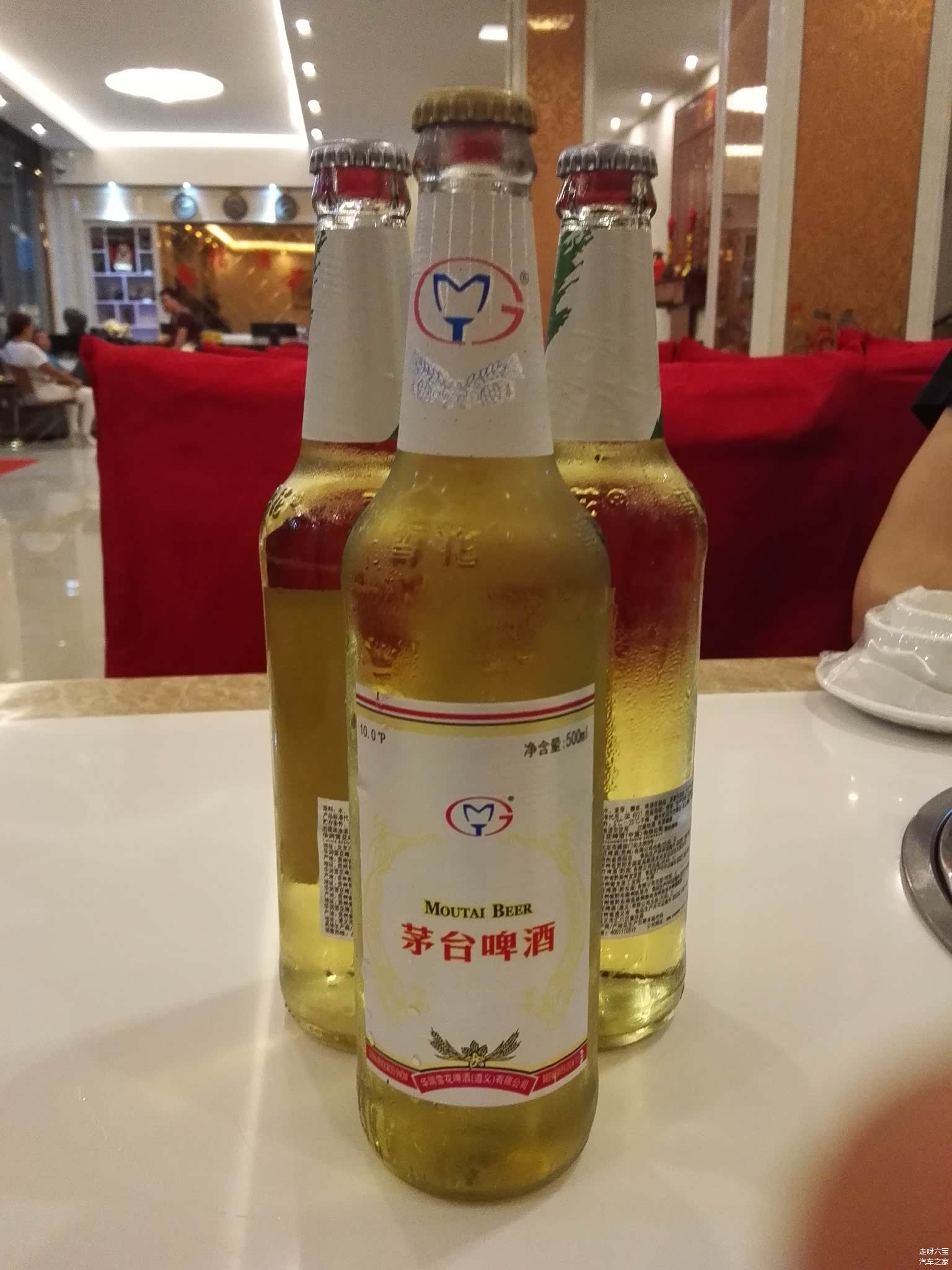 到高速黄果树出口,黑已经完全黑了下来。迎宾大道上一个人影都没有,像一个空城。正在用手机搜索住宿时,后来开来一辆车, 安福 酒店的老板娘来拉客。不得不佩服老板娘,拉客很有一套,先是说需要住店的话可以看下他们酒店的图片,然后拿着手机就给我们看图;之后说可以把我们私家车带去景区,说开着私家车很方便(其实车并不能进景区的)两下相加,我们就没有拒绝的理由了。晚餐也在 安福 酒店吃的,饭菜香料用得少,原汁原味,吃得很舒服,老板还给打了个折,三个菜三瓶啤酒120。 安福 酒店的整体环境也算不错了,120/间。来,先喝个茅台!