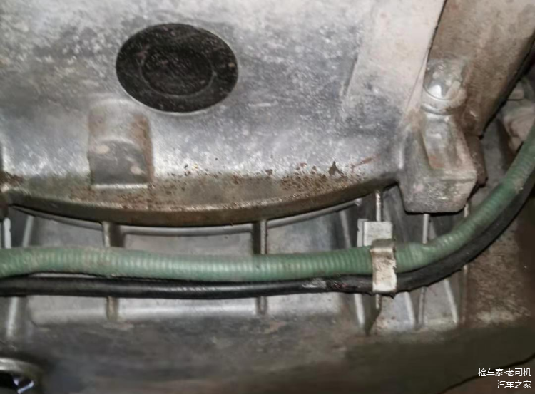 发变结合处有油渍,此处有轻微的渗油,如果后期需要维修整备的话,必须要拆变速箱才行,成本有点儿高,目前也不影响使用,所以暂时可以不用管它。