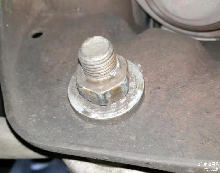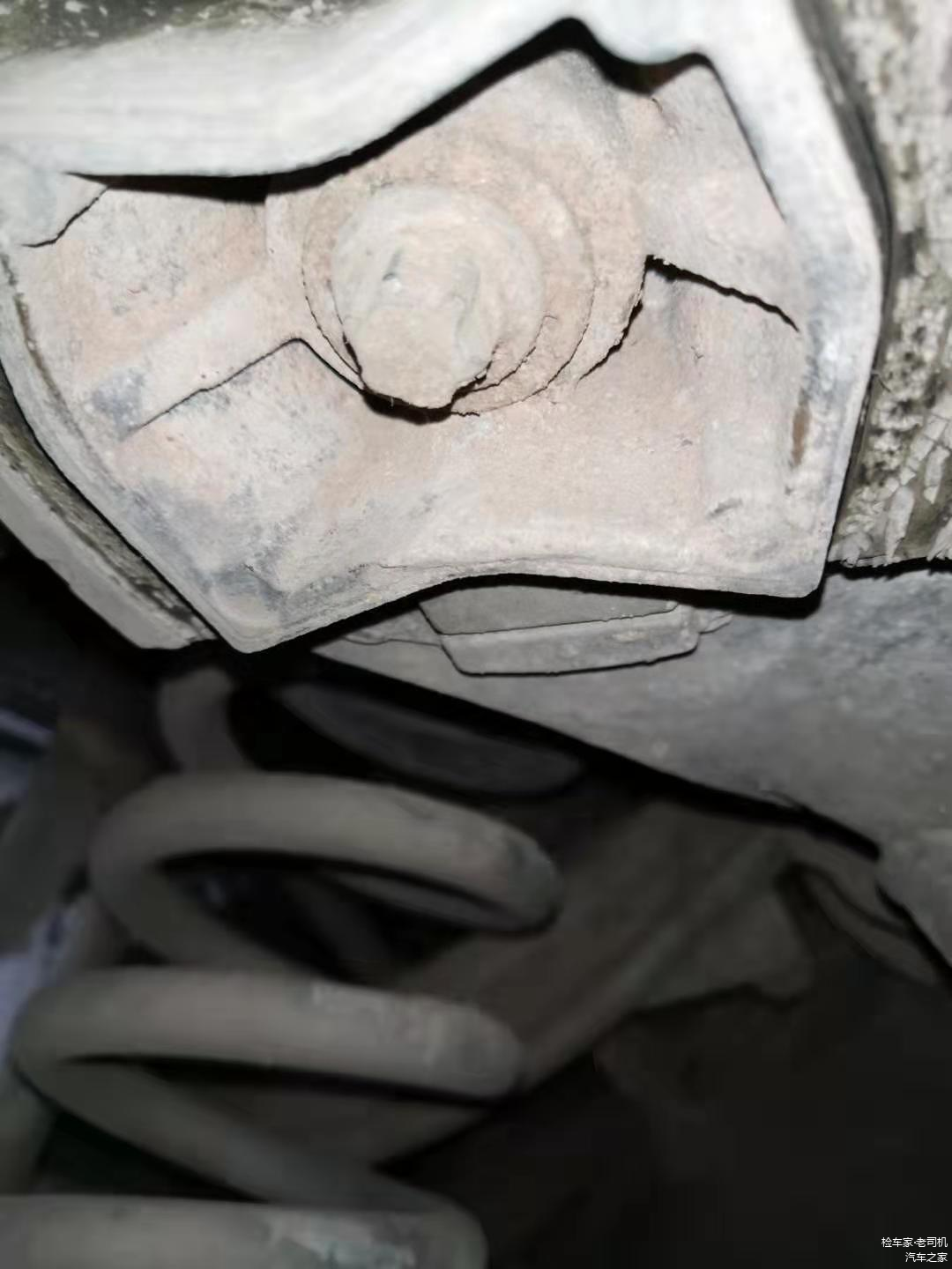 两前下支臂和横拉杆外球头的固定螺丝均有拆卸拧动,从成色来看应该是全部新换的,那么不用看也知道元宝梁拆过了,因为如果不拆元宝梁的话下支臂拿不出来。