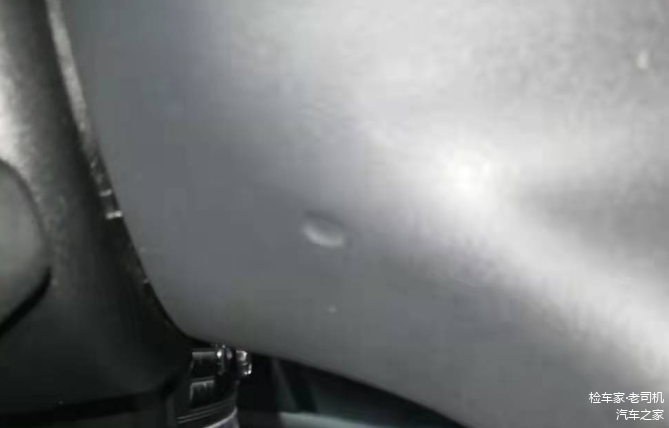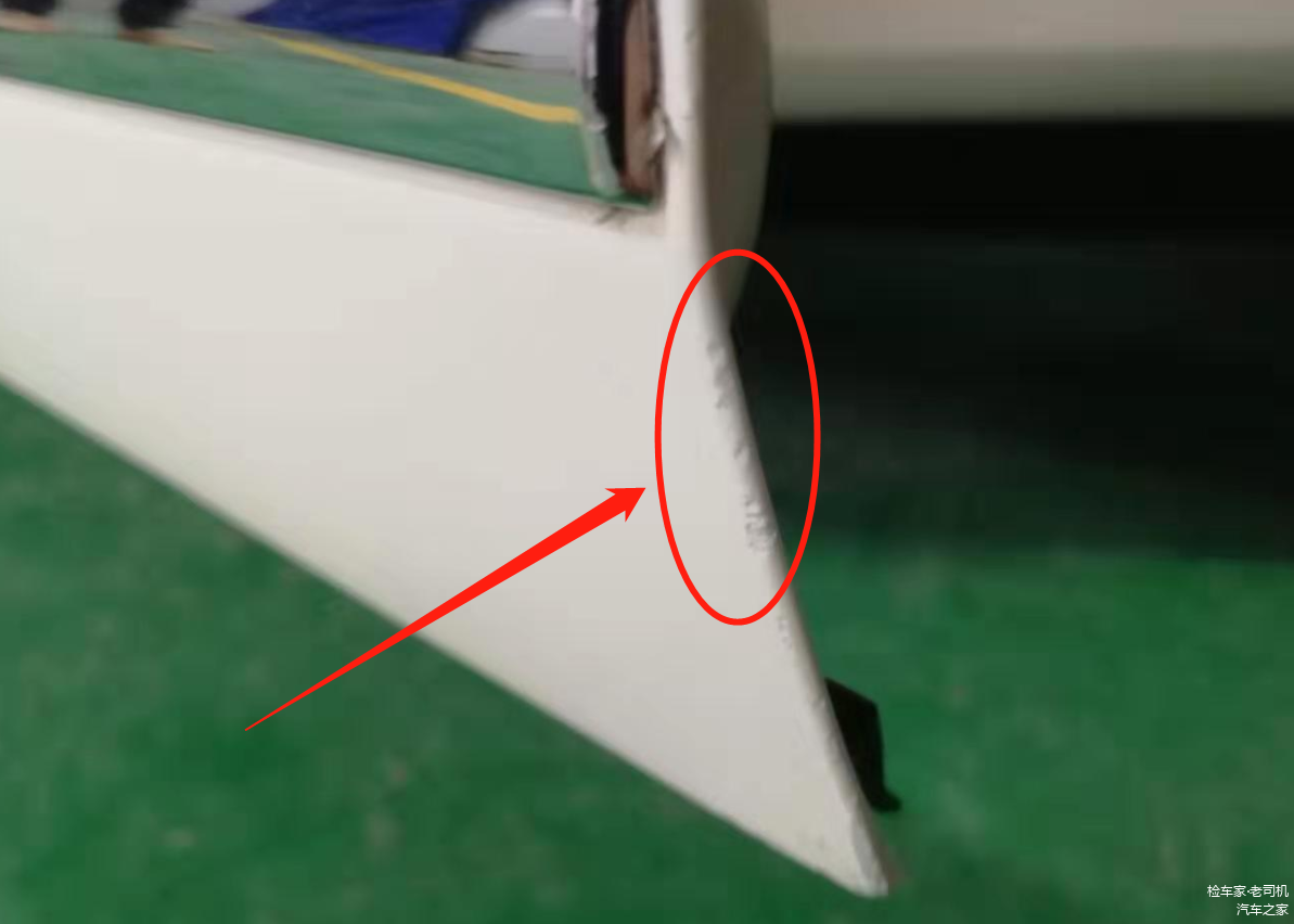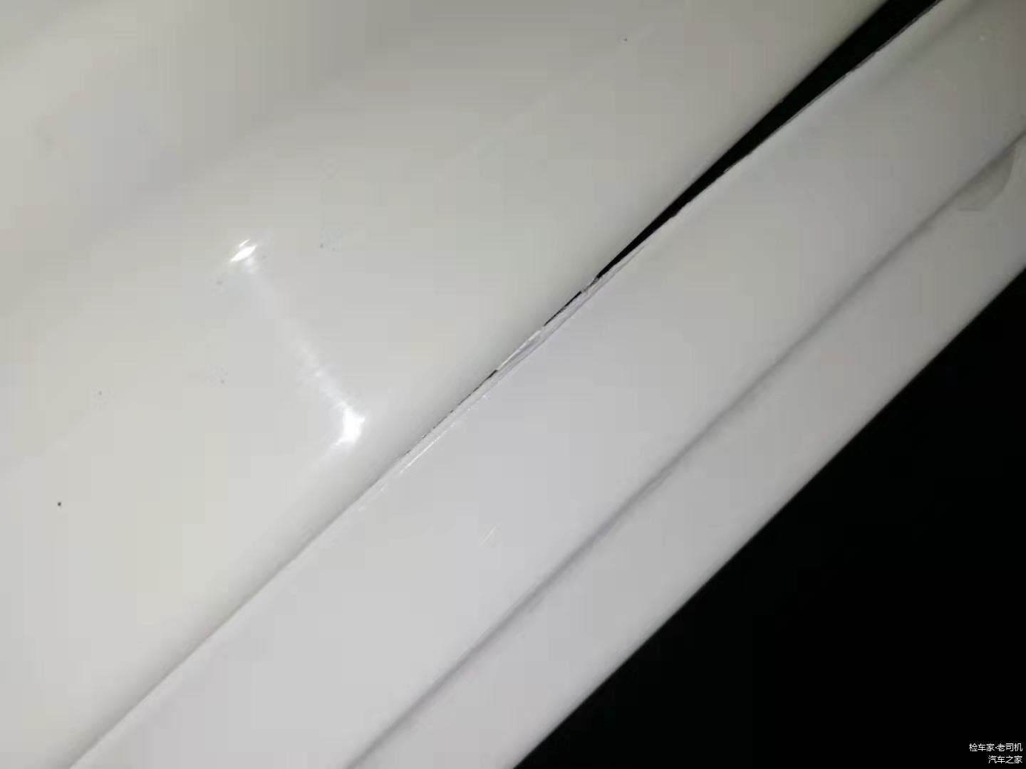 这里是左侧底大边外的塑料饰板,可以看到与门框的缝隙处漆面有明显的飞漆且很不均匀,这个地方属于刮蹭的高发区。