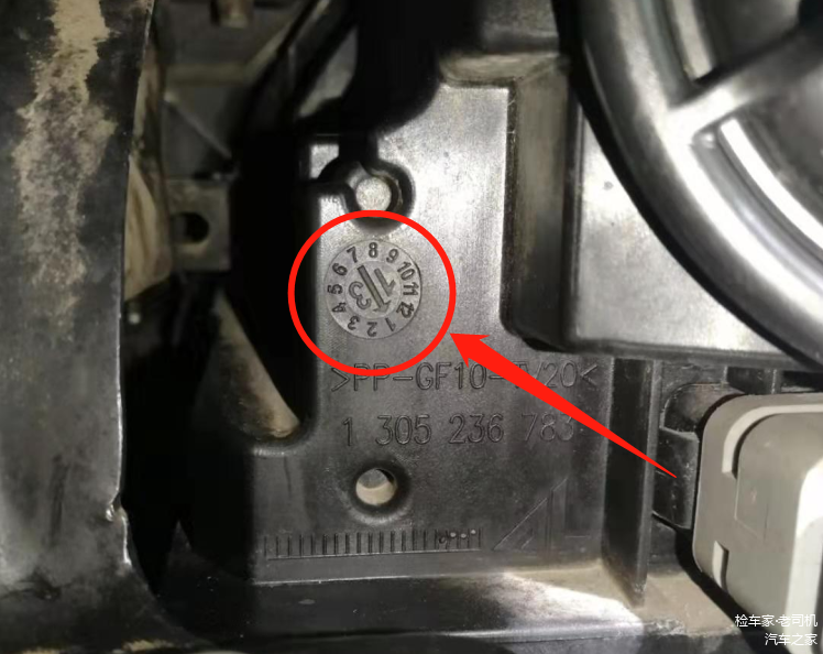 右前大灯出厂日期为2013年1月,晚于车辆出厂日期,毋庸置疑后换过的;看了一下左侧大灯无异常。才开一年就更换了大灯,并且没有两个一起换而是只换了右侧一个,二鹏我根据经验怀疑是因为事故碰撞导致了大灯的更换。