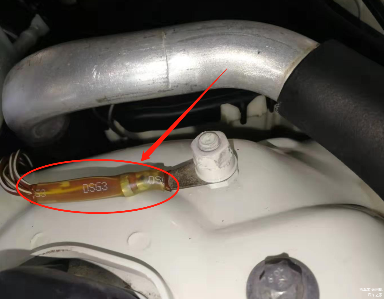 两前减震塔顶螺丝均未有拆卸痕迹,漆面数值也在正常范围内,但是上面的搭铁线固定螺丝有拆卸痕迹,应该是排除车辆某些故障时拆卸。