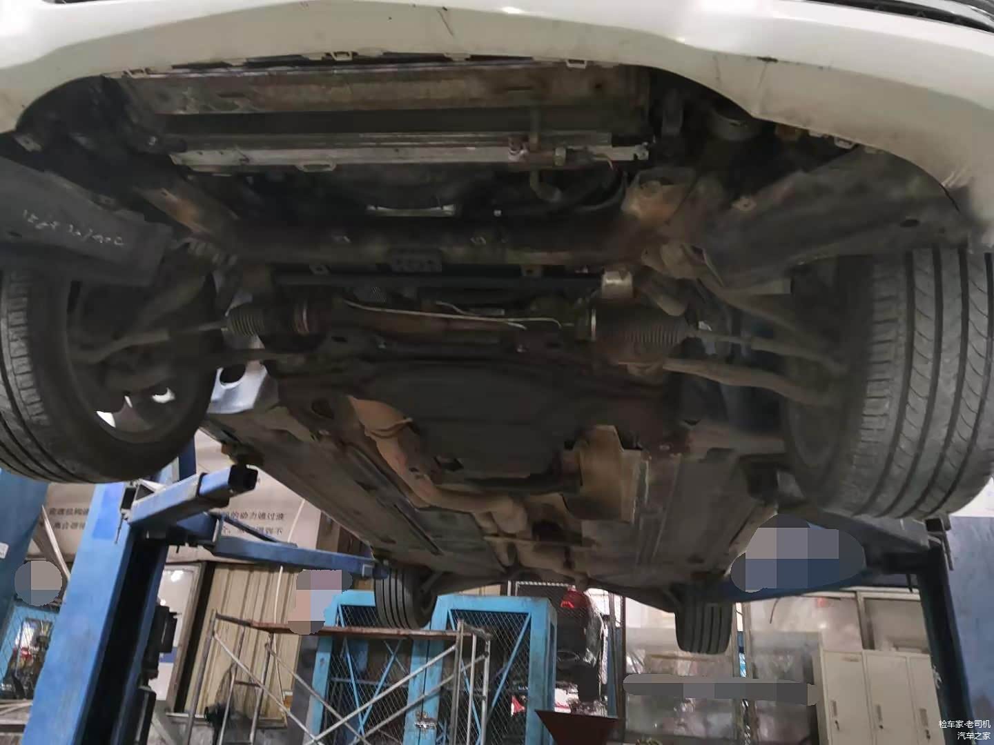 检测完内饰就该开出去路试了,结果客户小姐姐说算了,之前和同事已经试过车了,所以我们就直接去旁边汽修店上架检测底盘。