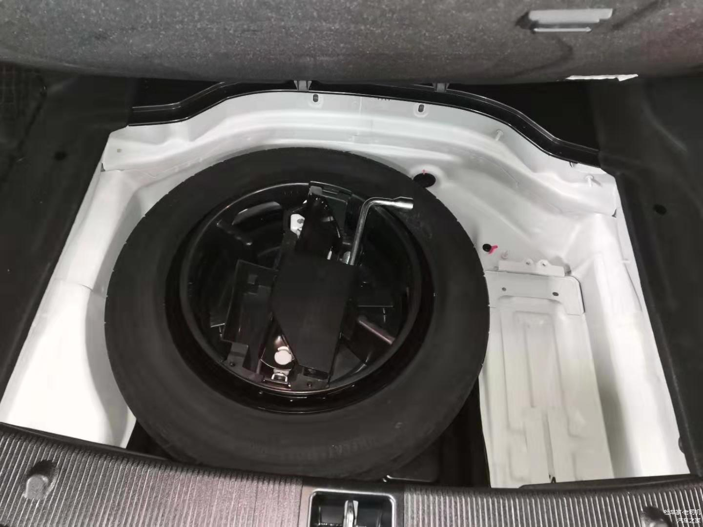 后备箱内备胎槽也是非常的干净,备胎为原车配备,有过轻微的使用痕迹,随车工具及三脚架、灭火器等用品齐全,无缺失无损坏。