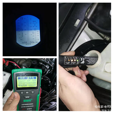 检查了一下全车的油水,都还在正常范围内,电瓶是已经更换过了,电压正常,但用电瓶检测仪检测显示需充电,应该是在车行停放时间长了导致亏电,充电后不影响正常使用。