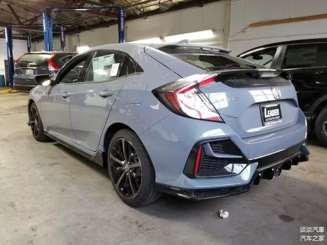 本田思域两厢海外实车。外观采用水泥灰涂装非常时尚,前脸采用黑色格栅造型,大灯造型精致犀利,下格栅采用蜂窝式的设计,两侧圆形雾灯设计时尚,前脸处理运动。侧面采用运动的造型,车顶轮廓流畅舒展,车身比例协调,黑色轮毂造型运动。尾部采用很有层次感的造型,尾翼造型运动,尾灯造型独特个性,排气设计新颖。内饰家族式的设计风格,做工精细,按键布局合理,空间宽敞。
