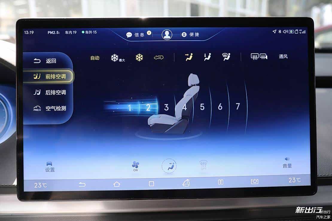 腾势 X 的内饰你一坐进去就会发现其与比亚迪唐在质感上的差异。不仅是融合了奔驰自己的标志性的设计语言,在材质方面也是得到了提高。中控大屏的 UI 也经过了重新设计。圆润的中控台设计语言比唐直棱直角的设计语言,会更讨喜用户尤其是女性用户。空调出风口也采用了类似飞机引擎的设计,非常奔驰。在副驾前方也再次出现了 “Style by Mercedes-Benz” 的标志,表明了奔驰对于这套内饰的深度参与。