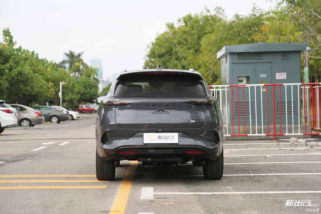 独特的贯穿式的尾灯设计,与前大灯相呼应,并融入了奔驰自己的设计思想在里面。整个尾灯非常的圆润光滑,与唐较为硬朗的设计语言区别了开来,官方称其为 “萦绕式 LED 灯带”。后方大大的 X 以及 “Performance” 的标志都表明了这不是个好惹的狠货。