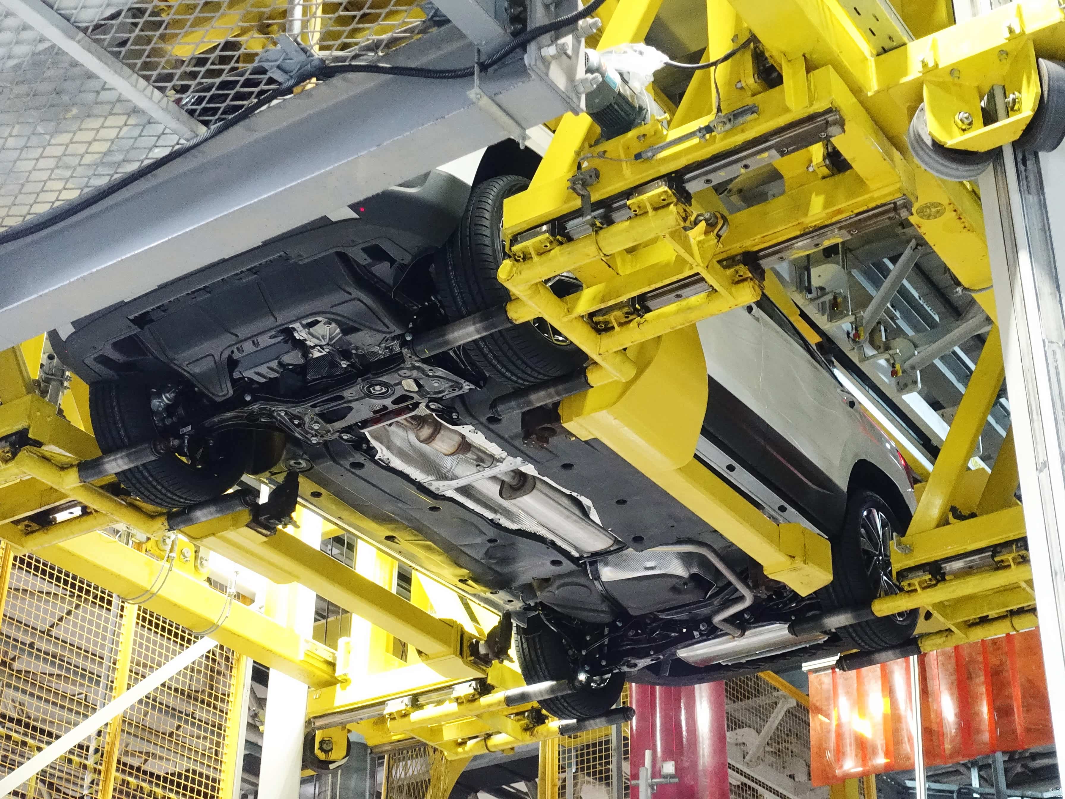 而H型布局的主装配线和分装线加上自动化流水线传输,又能够提升装配速度,据悉,车间内每58秒就有一辆捷达车型完成装配。而这条流水线上的底盘结合来说,捷达VS7的底盘和车身会在15-20秒内完成结合,全自动的电动拧紧设备一次性实现所有力矩达到标准,数据也将被上传到总部,10-15年的信息都可以进行追溯。