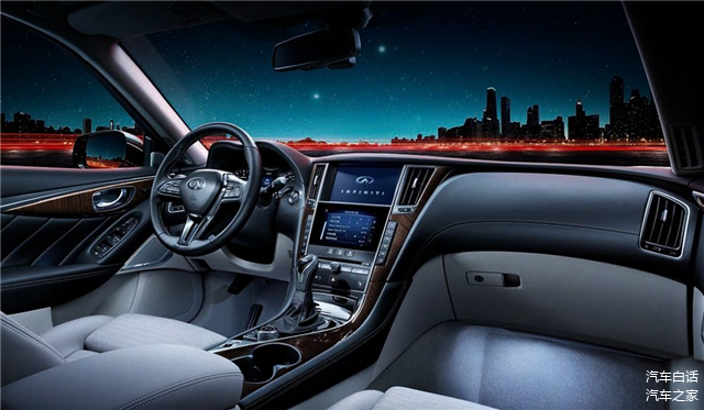 相较于外观,Q50L的内饰设计明显更偏居家风格,豪华感并不突出,上下双屏的设计算是一大亮点,不过也有一定弊端,那就是屏幕反光会更明显。中控屏两侧保留了左右对称设计的实体按键,使用起来更方便顺手,实用性还是不错的。只是UI界面设计较为老气,而且原厂不支持CarPlay和Carlife手机互联,多媒体娱乐体验不是很好。