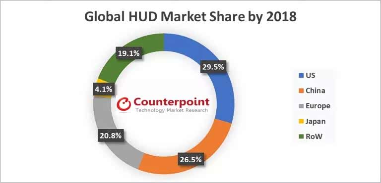 相对而言,HUD出现在新能源汽车及中高端汽车上的比例会更高,追求科技体验、愿意购买电动汽车的消费者一般也更加愿意为HUD等高级功能额外付费。而在我国,恰好新能源车型和中高端车型的销量都在稳步增加,因此,在全球HUD出货量中,中国将贡献越来越大的市场份额。