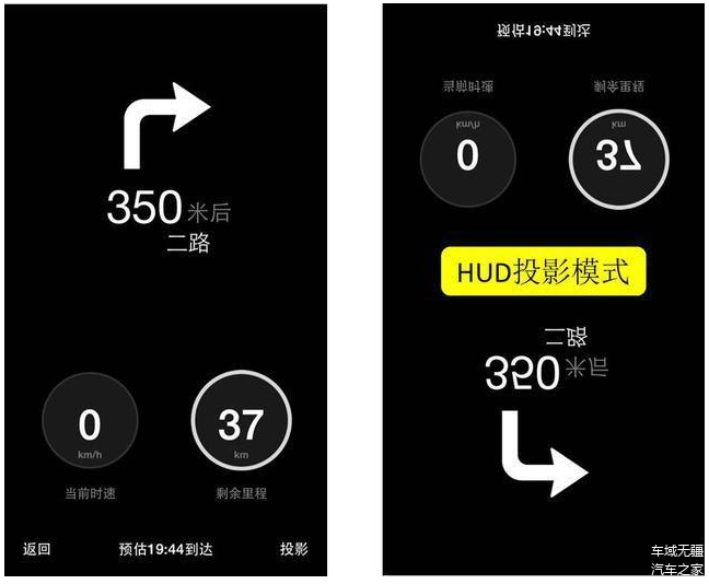 对于想体验HUD功能的车友,疆哥其实更为建议大家直接通过手机导航App简单尝鲜就好。目前,百度地图、高德地图等手机导航软件就已具备HUD投影功能,打开相应模式后,将手机放至靠近前挡风玻璃的中控台上,手机上的画面就会反射上去。