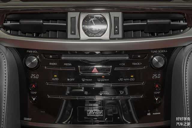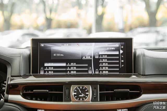 屏幕下方为空调控制和收音机等控制区域,该处采用了钢琴烤漆材质,档次感十足,并且按键布局很清晰便于盲操,专属雷克萨斯时钟也是其豪华的体现,Mark Levinson®高级音响也能带来更好的乘驾体验。