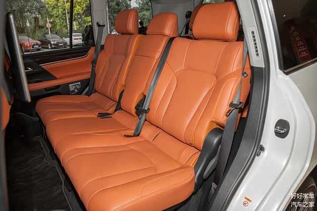 在内部乘坐空间方面,雷克萨斯LX570的表现也很不错,首先要说的是前排头部空间。众所周知,这类大型SUV车型在空间方面有着先天的优势,因此一般头部空间都非常充裕。身高1.79米的体验者把座椅调至最低,并调节好适当的驾驶坐姿后,头部有一拳多的空间。保持前排座椅的调节不变,并第二排座椅调节到最前的位置,当体验者坐在后排做体验时,头部和腿部都有一拳的空间。而它的第二排中央位置的空间也尚算可以,有头枕、地板平整、脚掌空间也足够宽松。即使身高有1.79米的体验者坐在这个位置时也相当轻松。前两排座椅均是保持之前的调节不变。当体验者坐在第三排做体验的时候,头部和腿部都已经没有空间剩余,且略有压抑感。我相信如果体验者是身材小一点的女生和儿童的话,舒适感应该会不错。