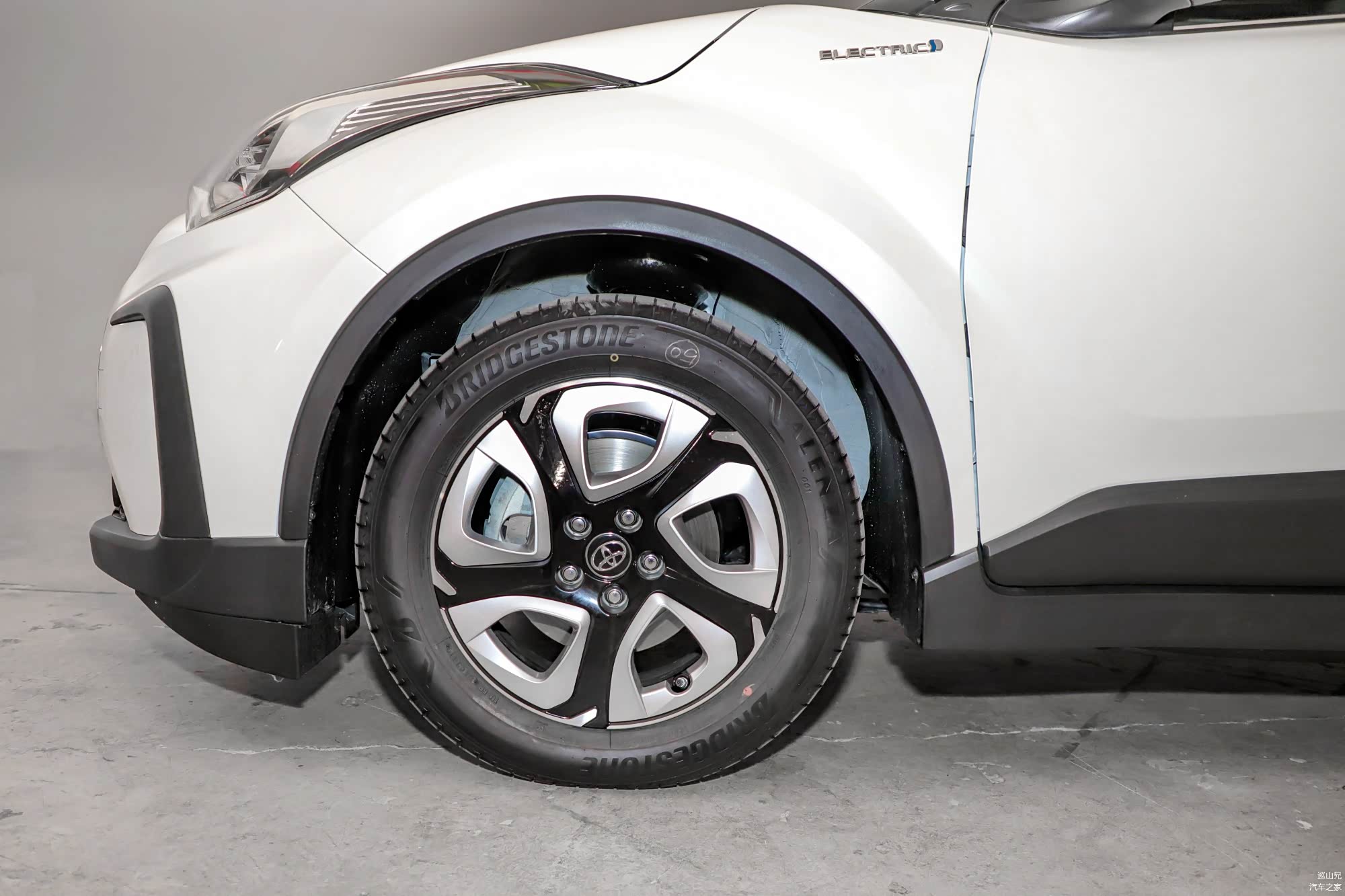 圈胎方面,带树脂装饰的17英寸铝合金气动涡流切削轮圈造型看起来比较有辨识度,现场这台带天窗版C-HR EV采用的是普利司通ALENZA 001缺气保用轮胎(“防爆胎”),耐磨性和抓地力都不错。之所以采用这个系列,巡山兄认为主要还是天窗版车型取消备胎的缘故。至于普利司通ALENZA 001,属于偏中高端的系列,宝马、奔驰、英菲尼迪等豪华品牌均有装备。C-HR EV上的尺寸为215/60 R17,网上价格在1000元左右。此外,非天窗版装备有非全尺寸备胎,巡山兄预计轮胎品牌会和天窗版有所差异。