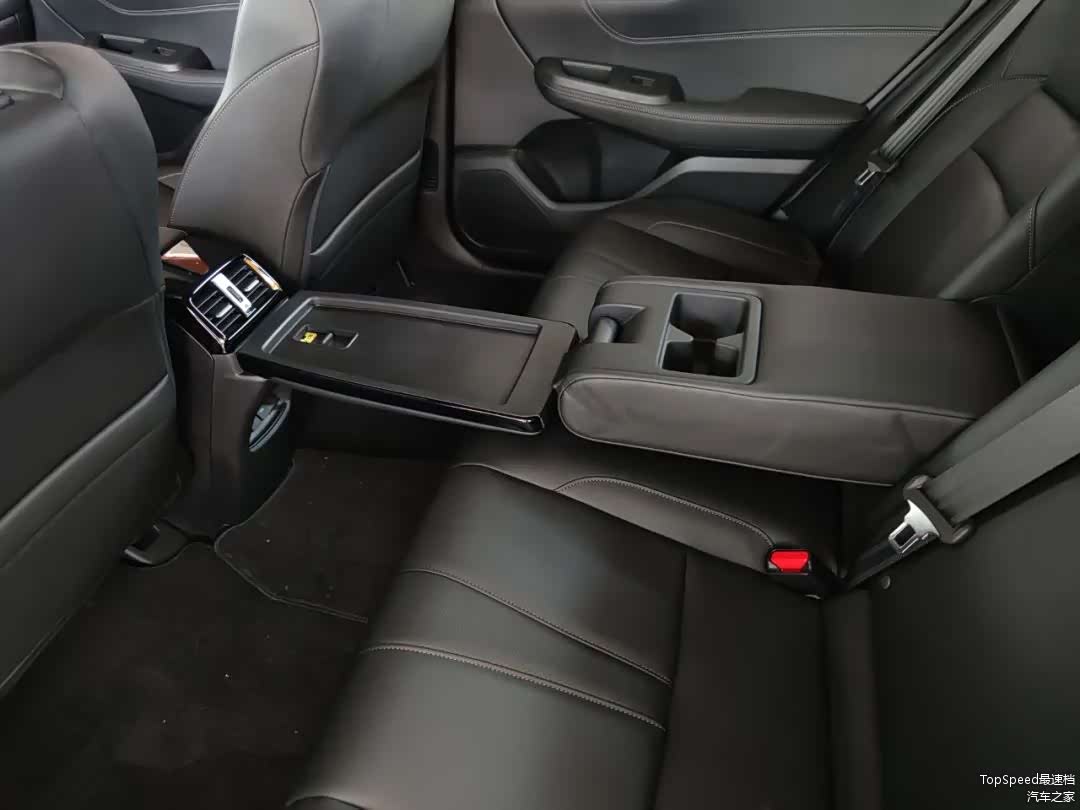 后排空间非常奢侈,身高180“大长腿”体验者的后排腿部空间至少两拳。座椅也足够柔软舒适,还有可以伸展搭到后排出风口的中央扶手,也就是被津津乐道的“折叠式小桌板”,这些都是凌派的杀手锏。