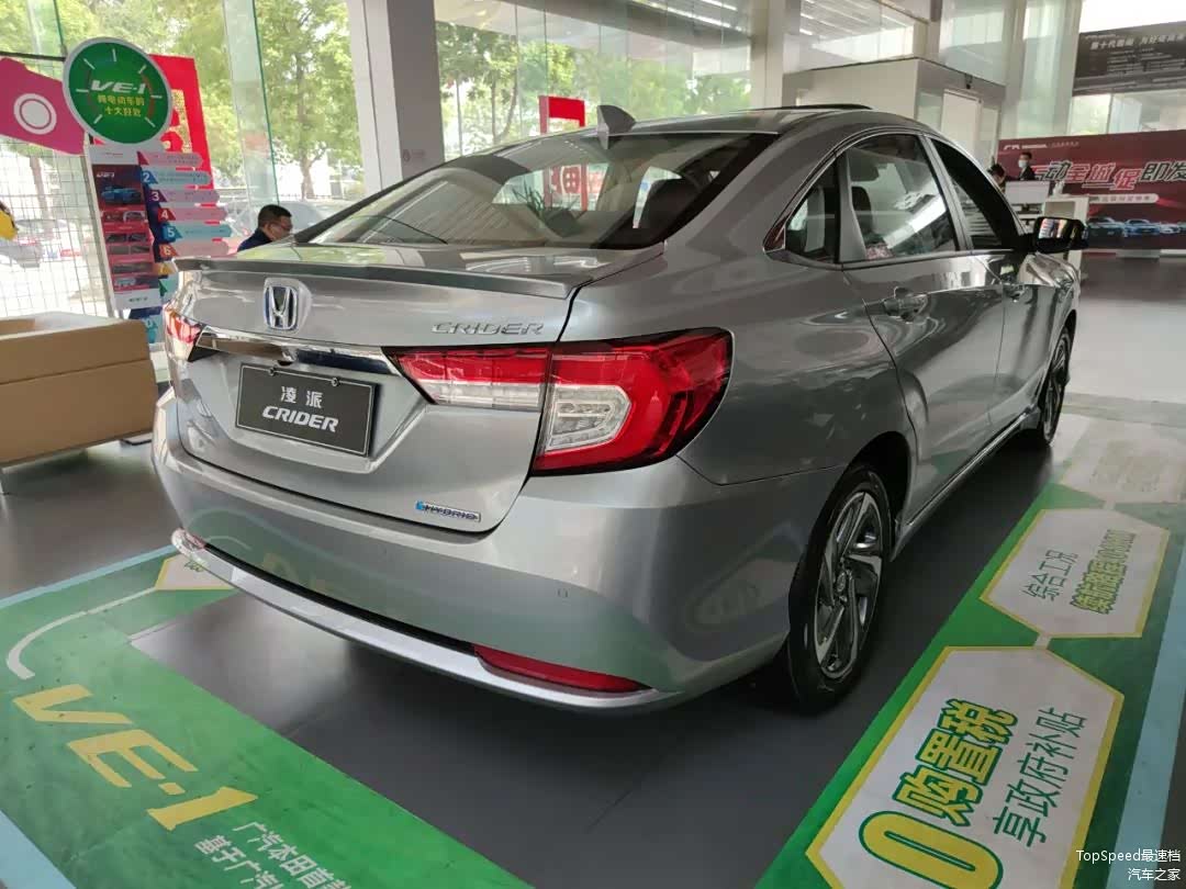 外观与燃油版的差异就是一些细节,比如带蓝色“光晕”的本田logo,车身上的HYBRID标识,全新样式的轮圈。车身尺寸与燃油版相比也没有变化,长宽高分别为4756/1804/1509mm,轴距2730mm。